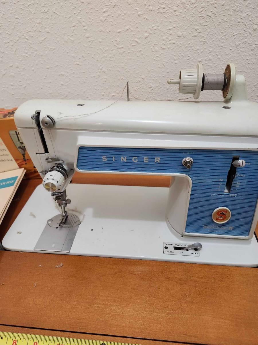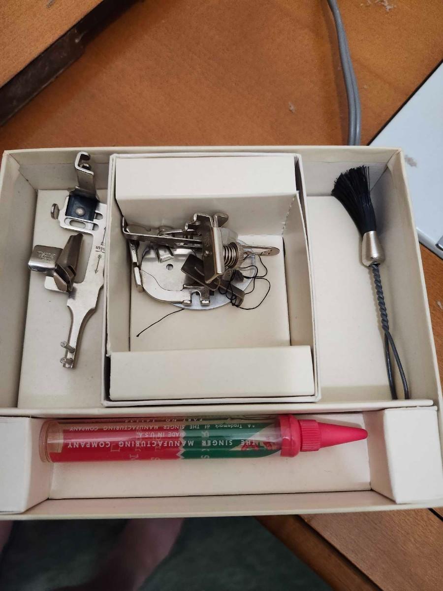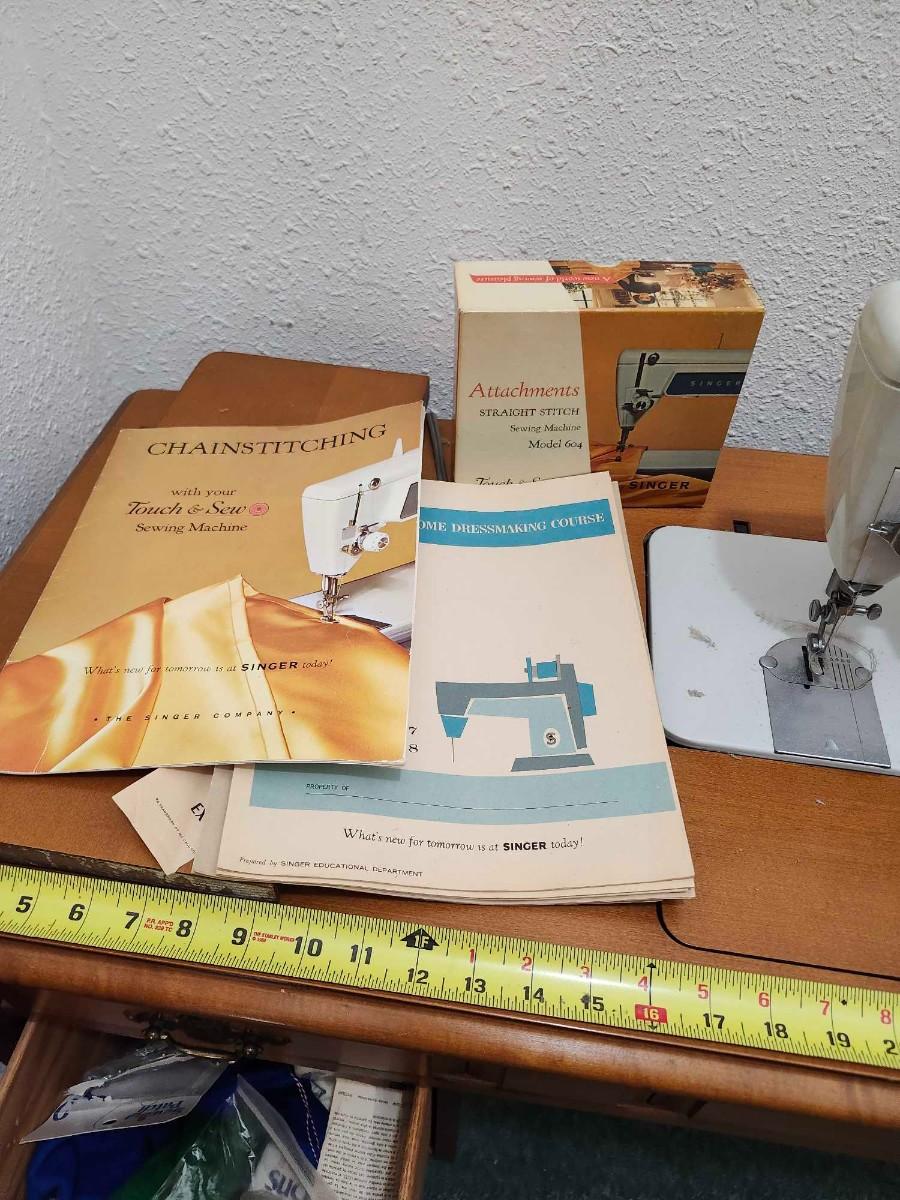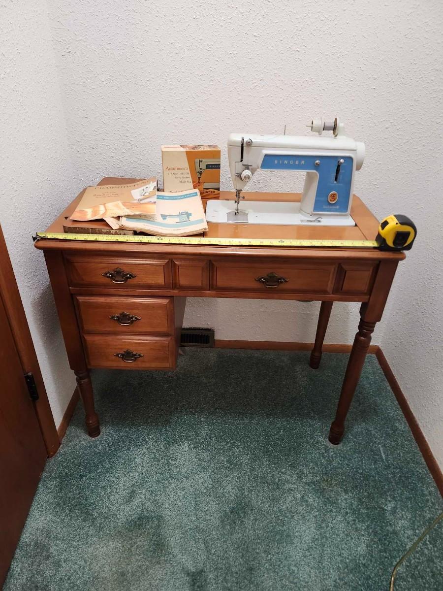 Works , Singer sewing machine with a maple cabinet and all accessories, 36"W x 18"D x 30"H