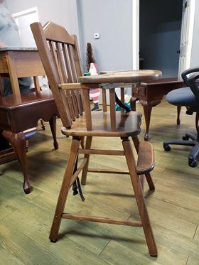Vintage, 1960's solid wood baby highchair. Removable tray.