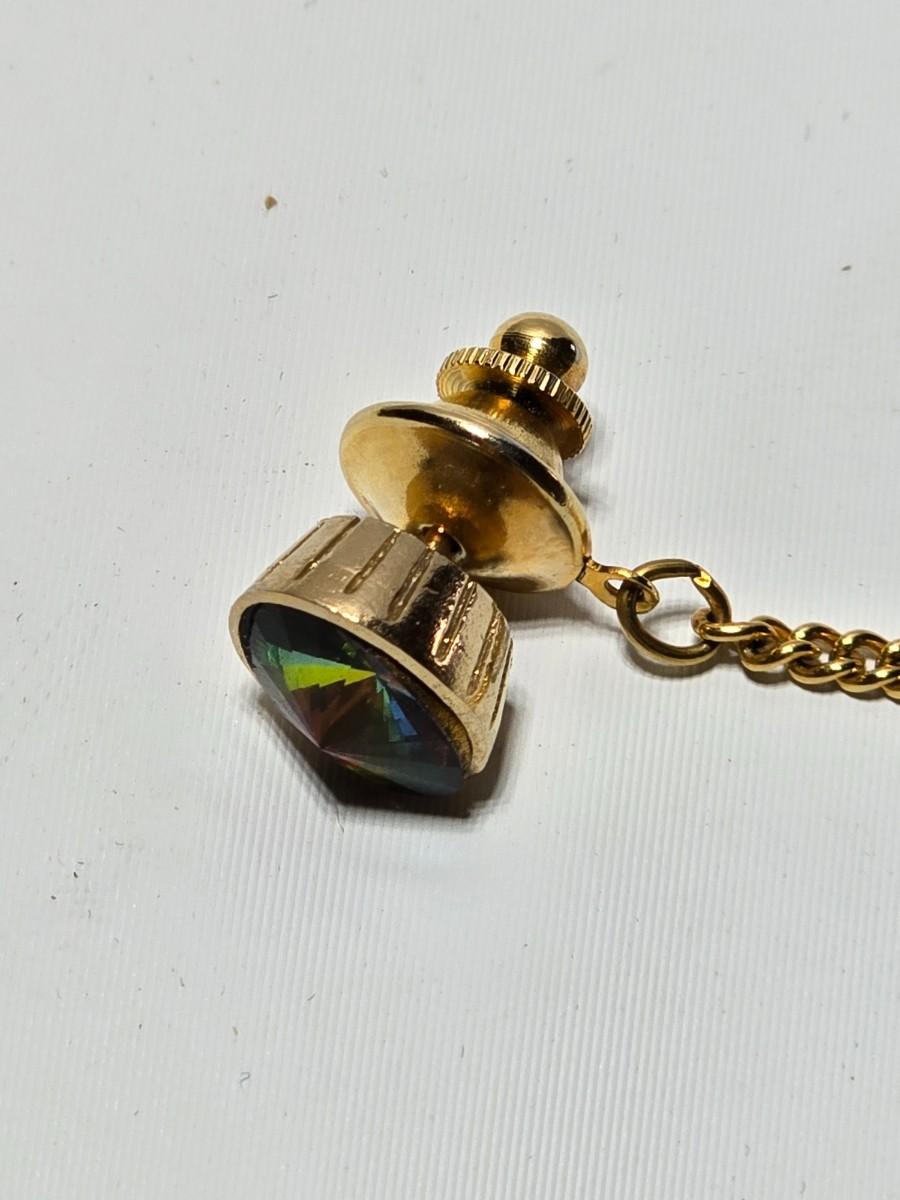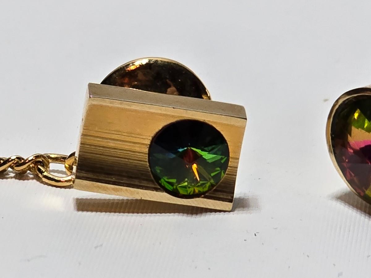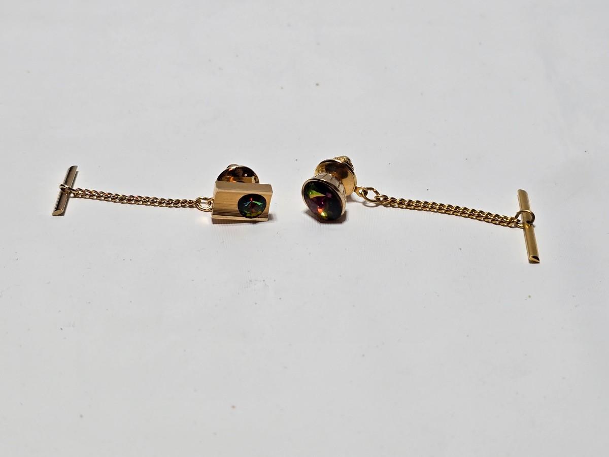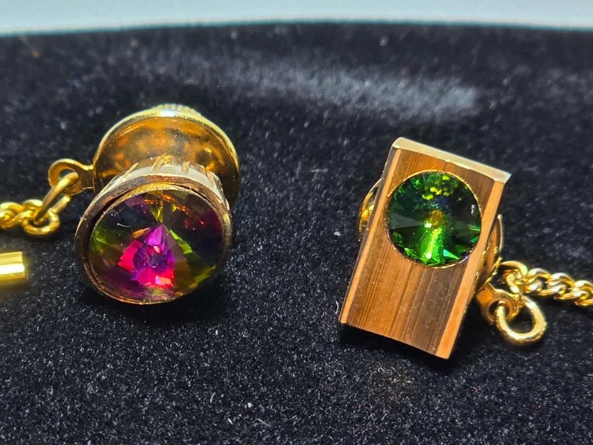 Vintage 1960's Watermelon Rivoli Tie Tac Rhinestone Gold Heliotrope - Tie tac duo -