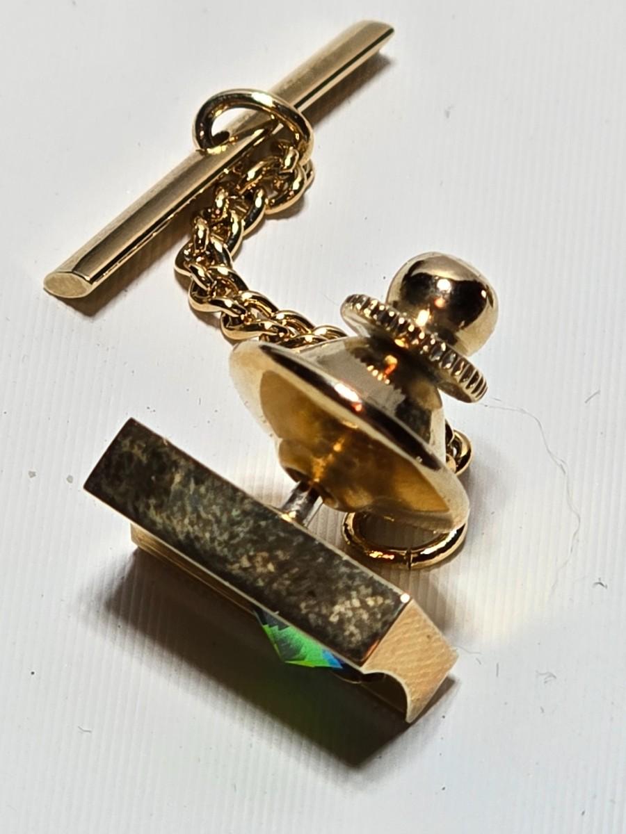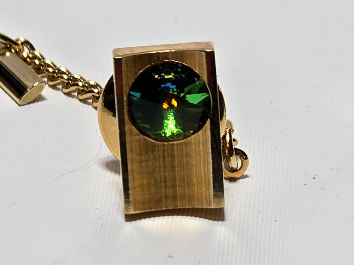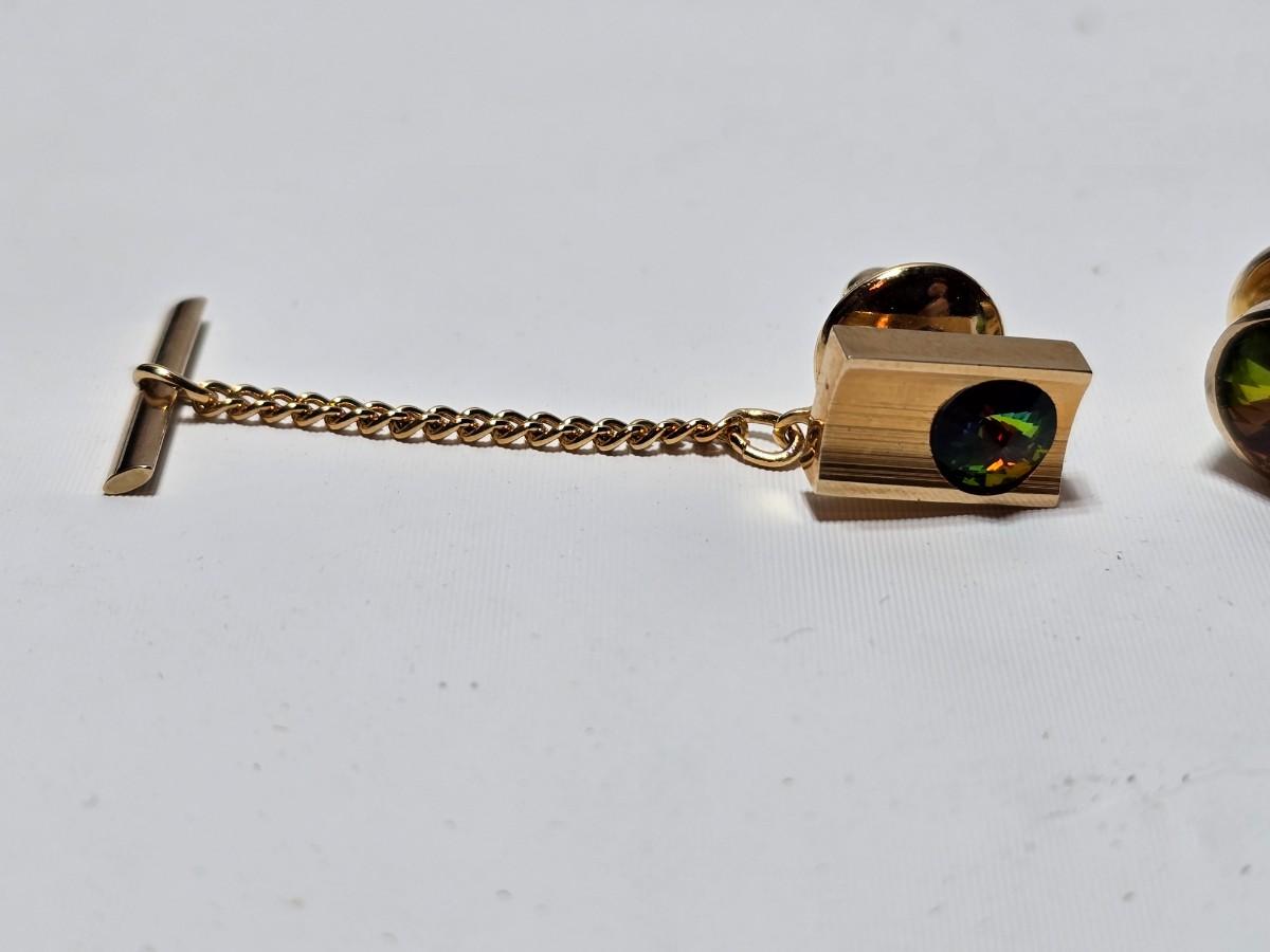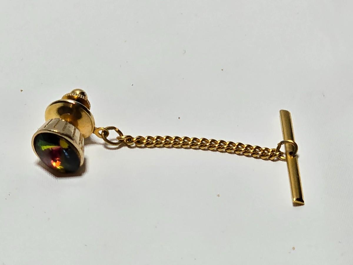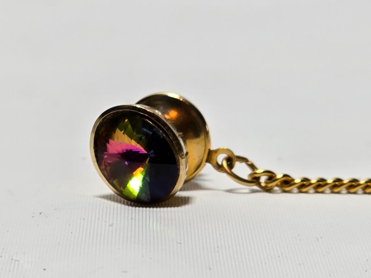 Vintage 1960's Watermelon Rivoli Tie Tac Rhinestone Gold Heliotrope - Tie tac duo -