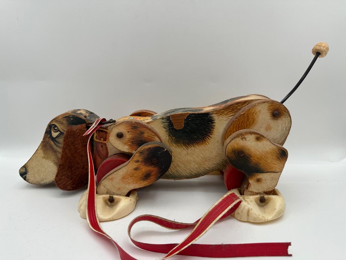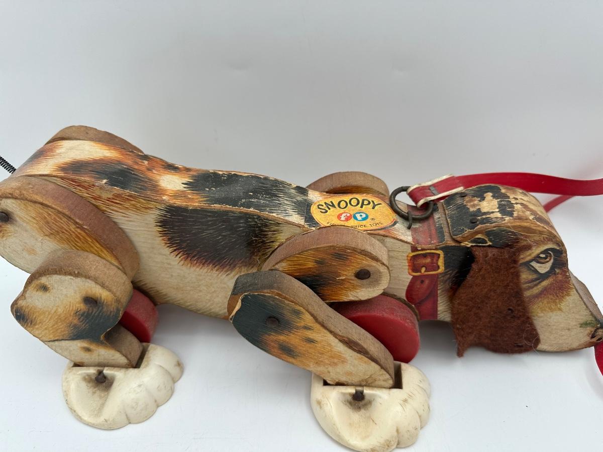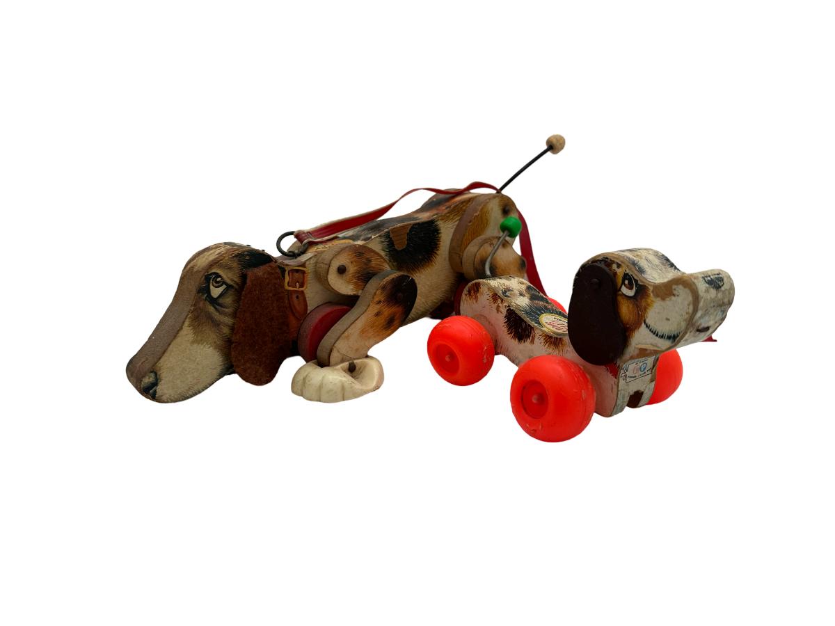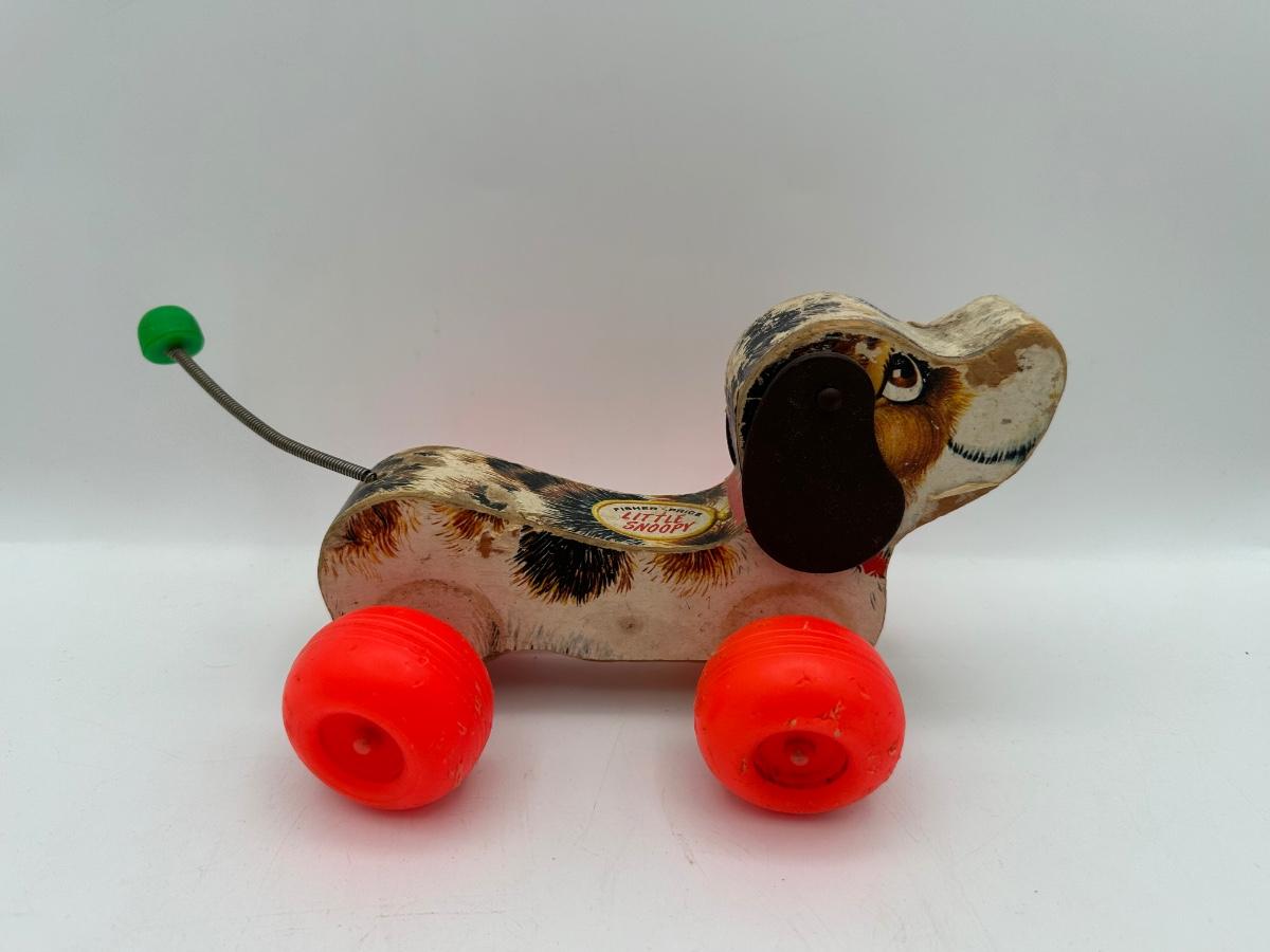 Vintage 1965 Fisher-Price "SNOOPY" 2 Dogs Wooden Pull Toys