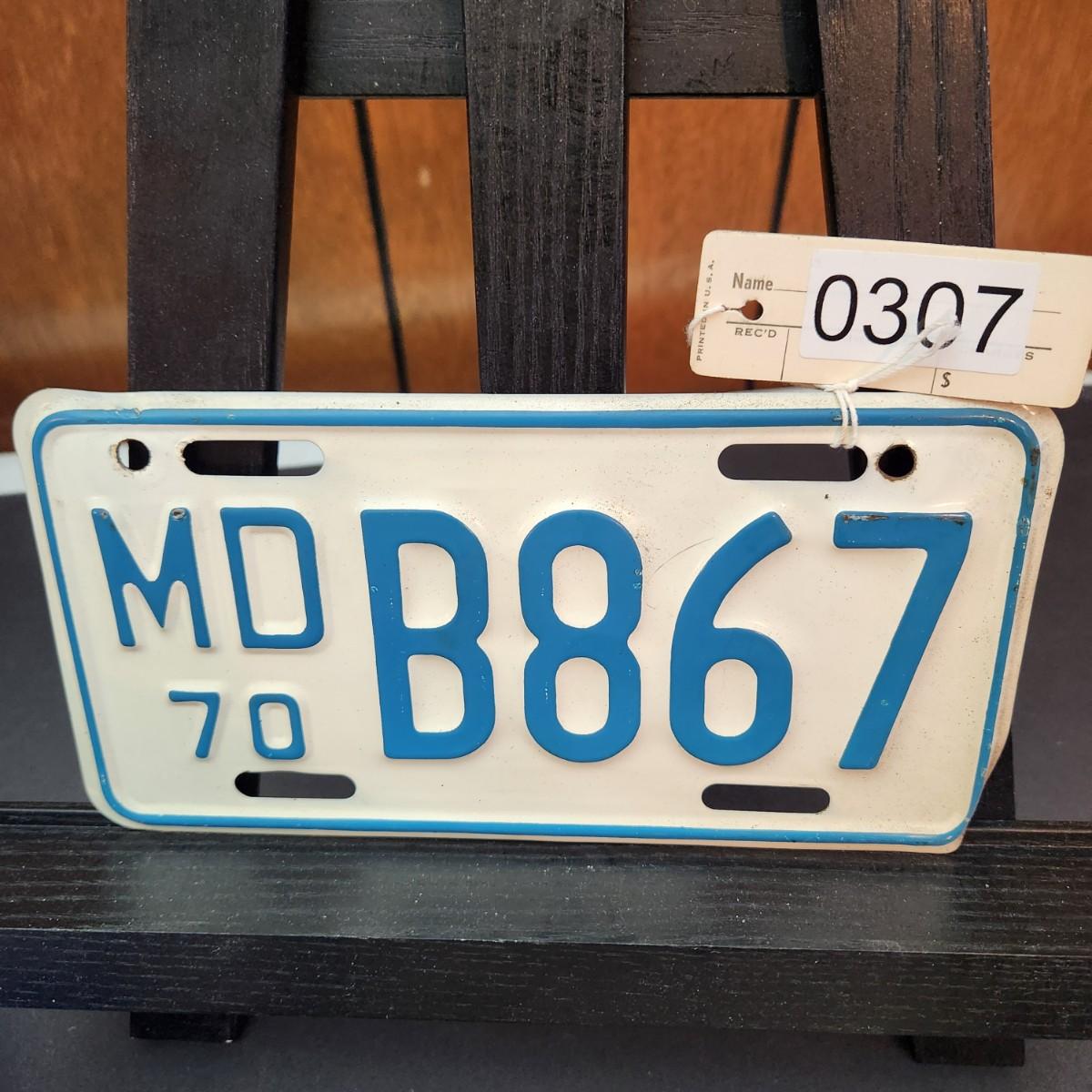 Vintage 1970 Maryland Motorcycle License Plate B867 Man Cave Garage