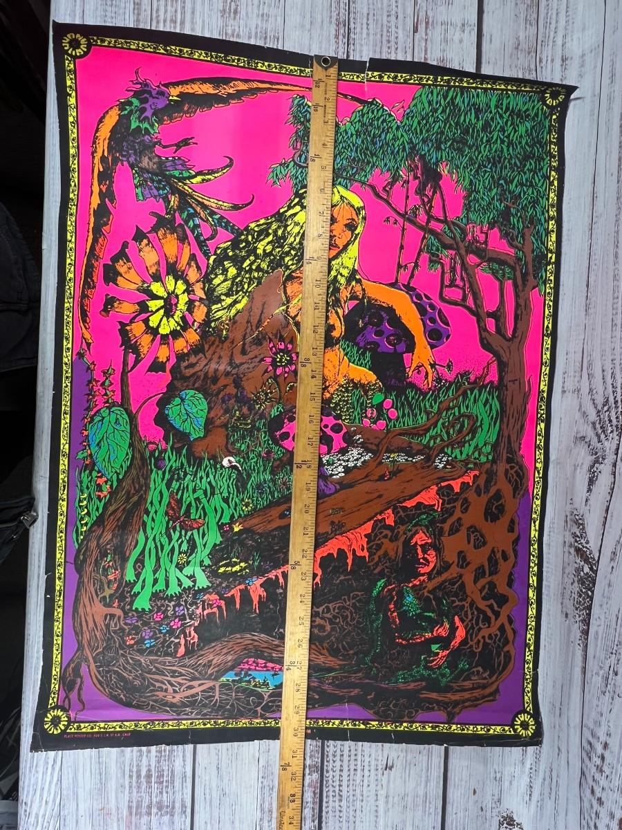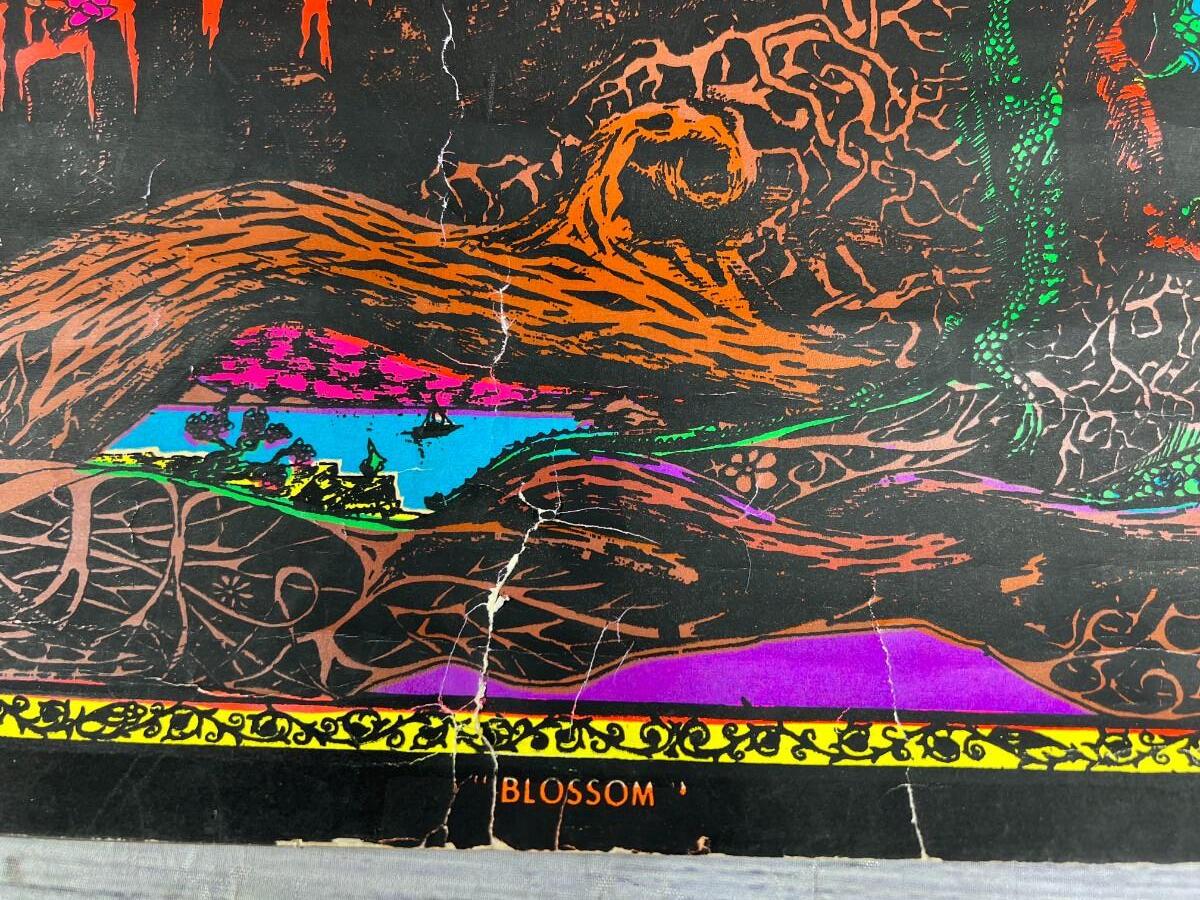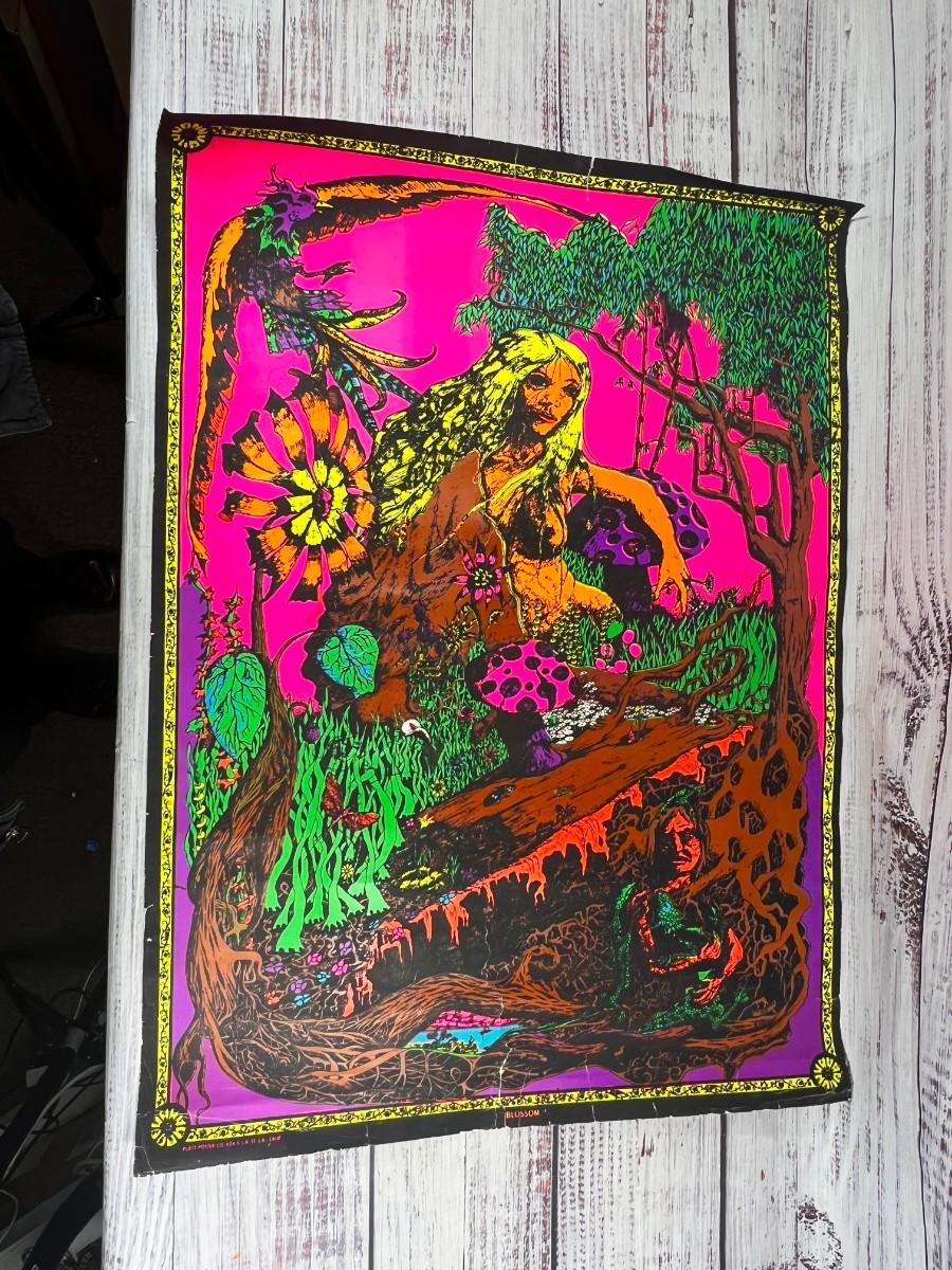 Vintage 1969 Blacklight Trippy Psychedelic Poster Blossom, there is wear to the poster and has been rolled up, but there is no significant damage and is in overall fair condition. Check pictures for more details and for sizing.