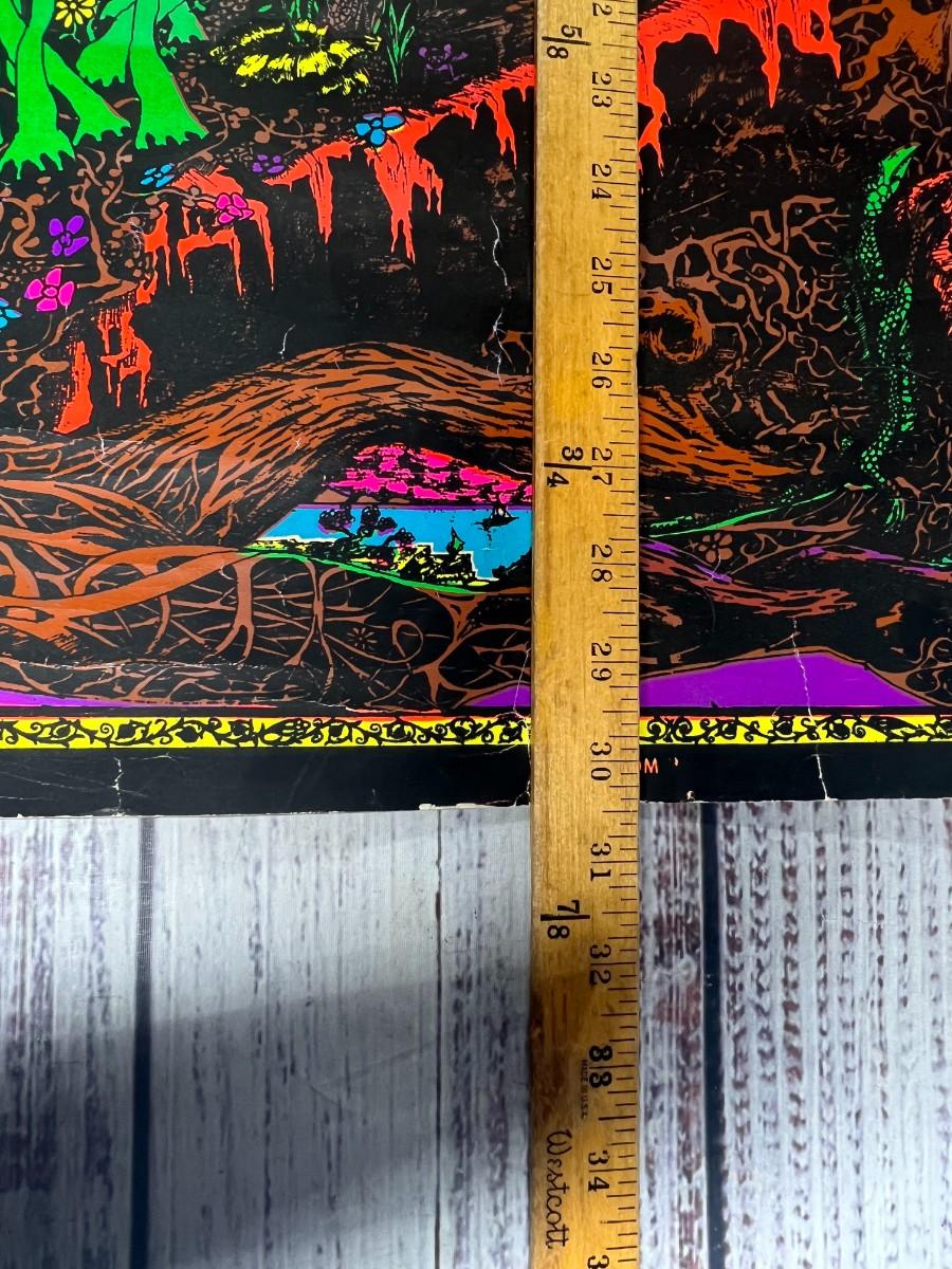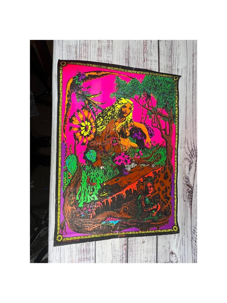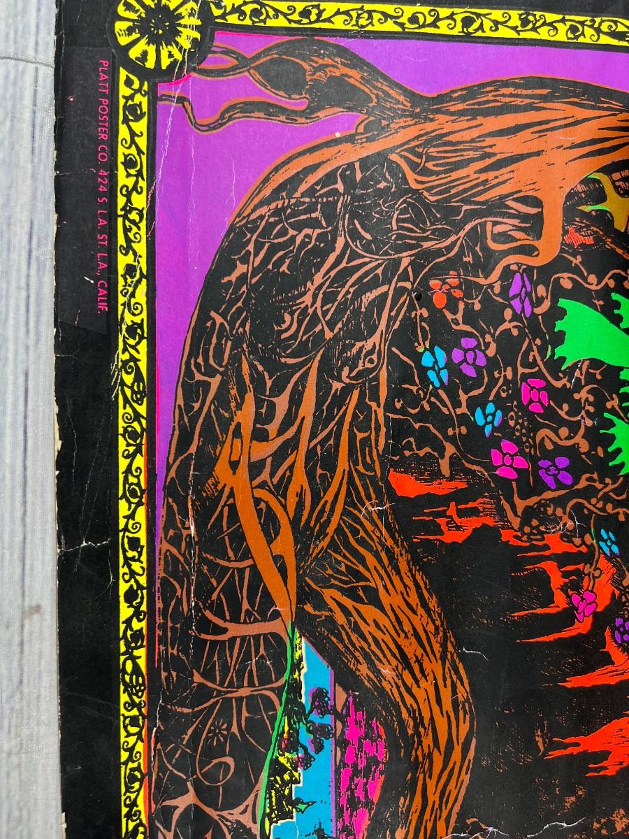 Vintage 1969 Blacklight Trippy Psychedelic Poster Blossom, there is wear to the poster and has been rolled up, but there is no significant damage and is in overall fair condition. Check pictures for more details and for sizing.