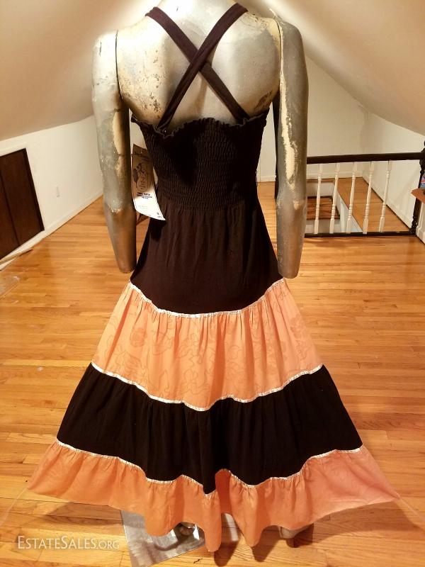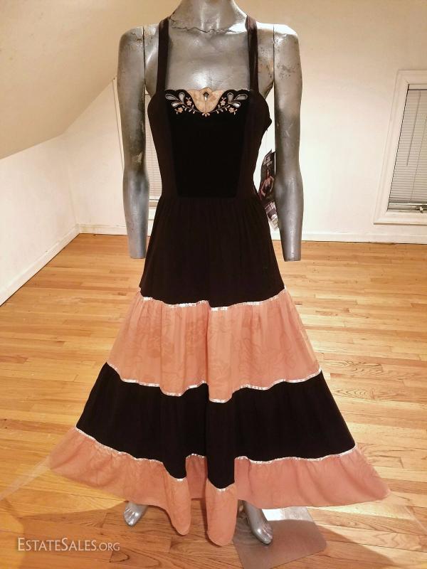 This one is a stunner from the early 1970's Young Edwardian by Arpeja They had whole departments at Saks 5th Avenue and Lord & Taylor and were the hottest line in the late 1960's early 1970's. This one is a size 7 The top bodice is stretch gathered at back elastic .