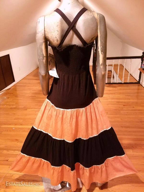 This one is a stunner from the early 1970's Young Edwardian by Arpeja They had whole departments at Saks 5th Avenue and Lord & Taylor and were the hottest line in the late 1960's early 1970's. This one is a size 7 The top bodice is stretch gathered at back elastic .