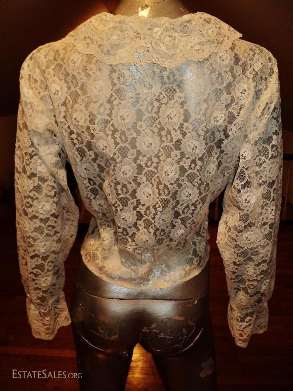 Gorgeous all laced Poet style blouse with ruffle details and pearl buttons in an egg shell coloration