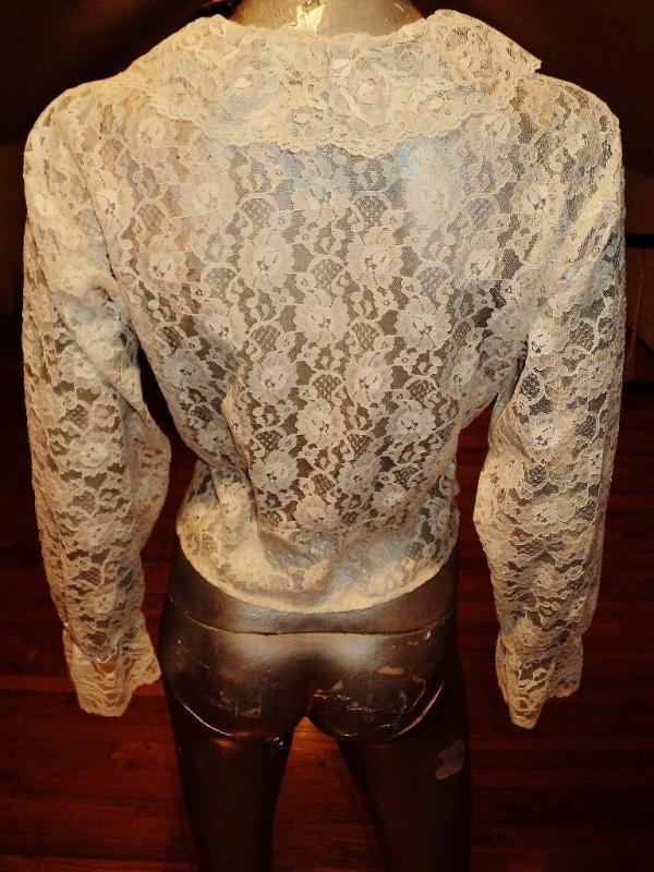 Gorgeous all laced Poet style blouse with ruffle details and pearl buttons in an egg shell coloration
