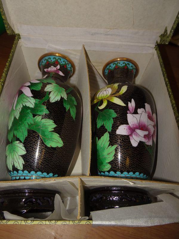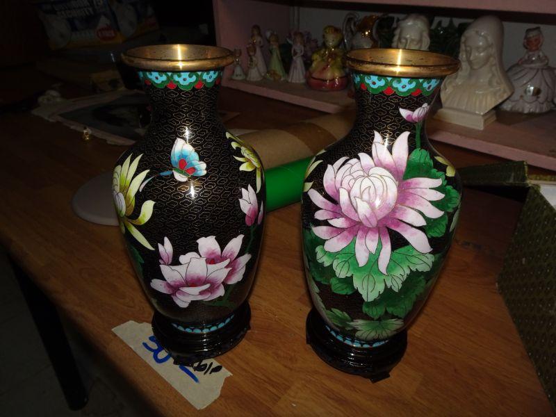 Vintage 1970's Colosense Black Floral Vases & Pedestals (2)