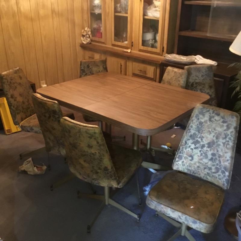 Vintage 1970s CompleteDinette Set w. 8 Chairs & Leafs