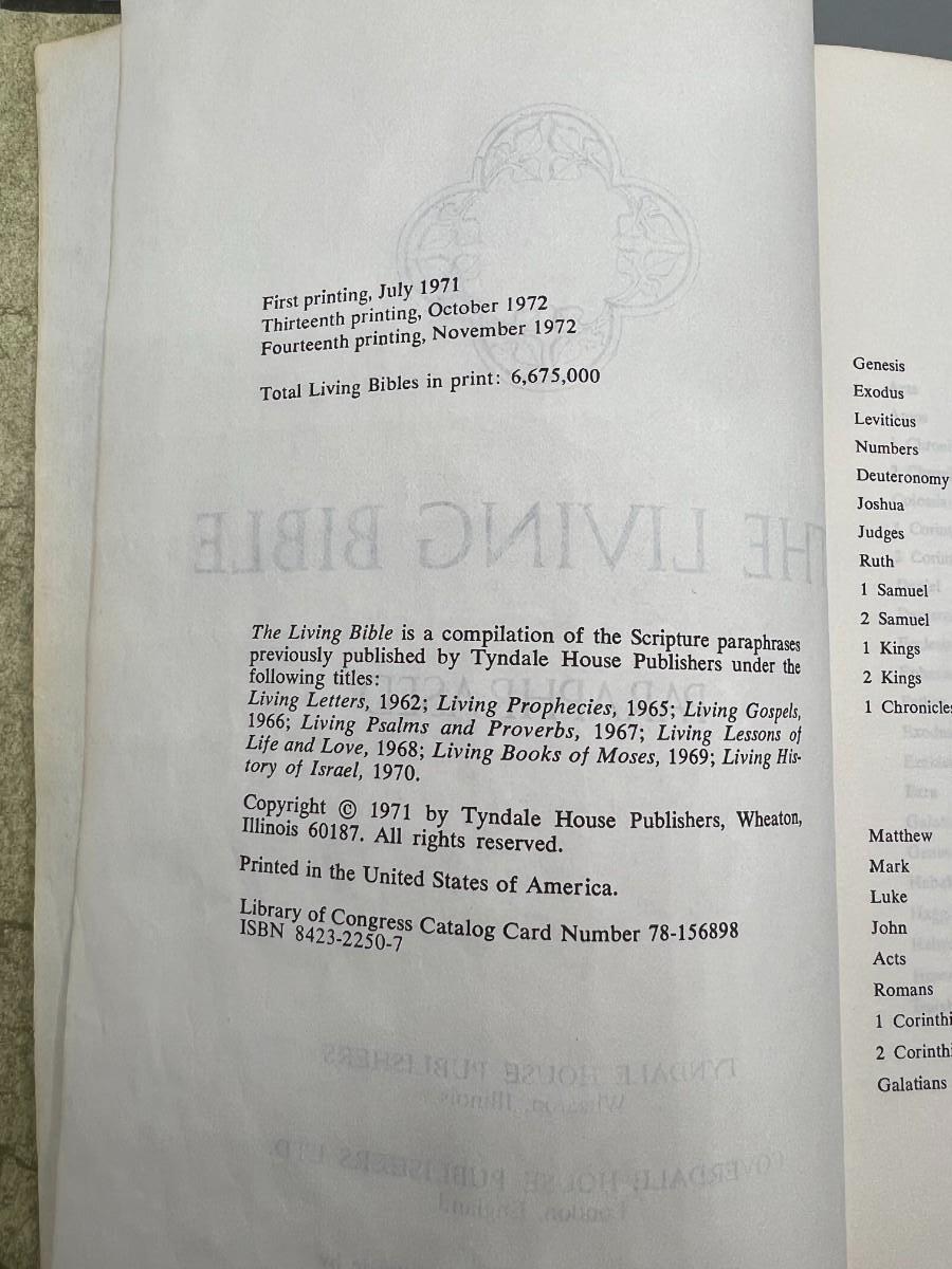 Vintage 1970's Holy Christian Bible The Living Bible Tyndale House Publishers