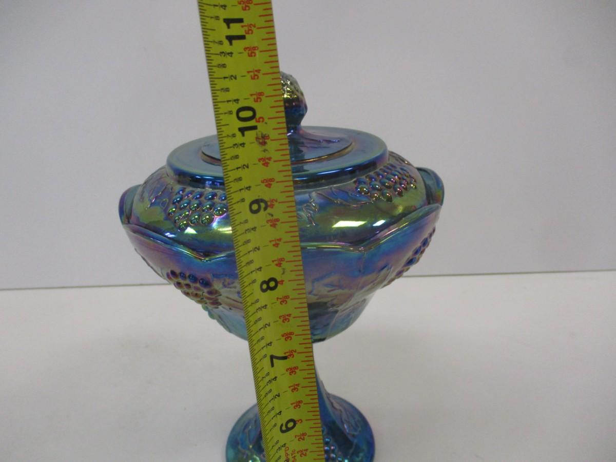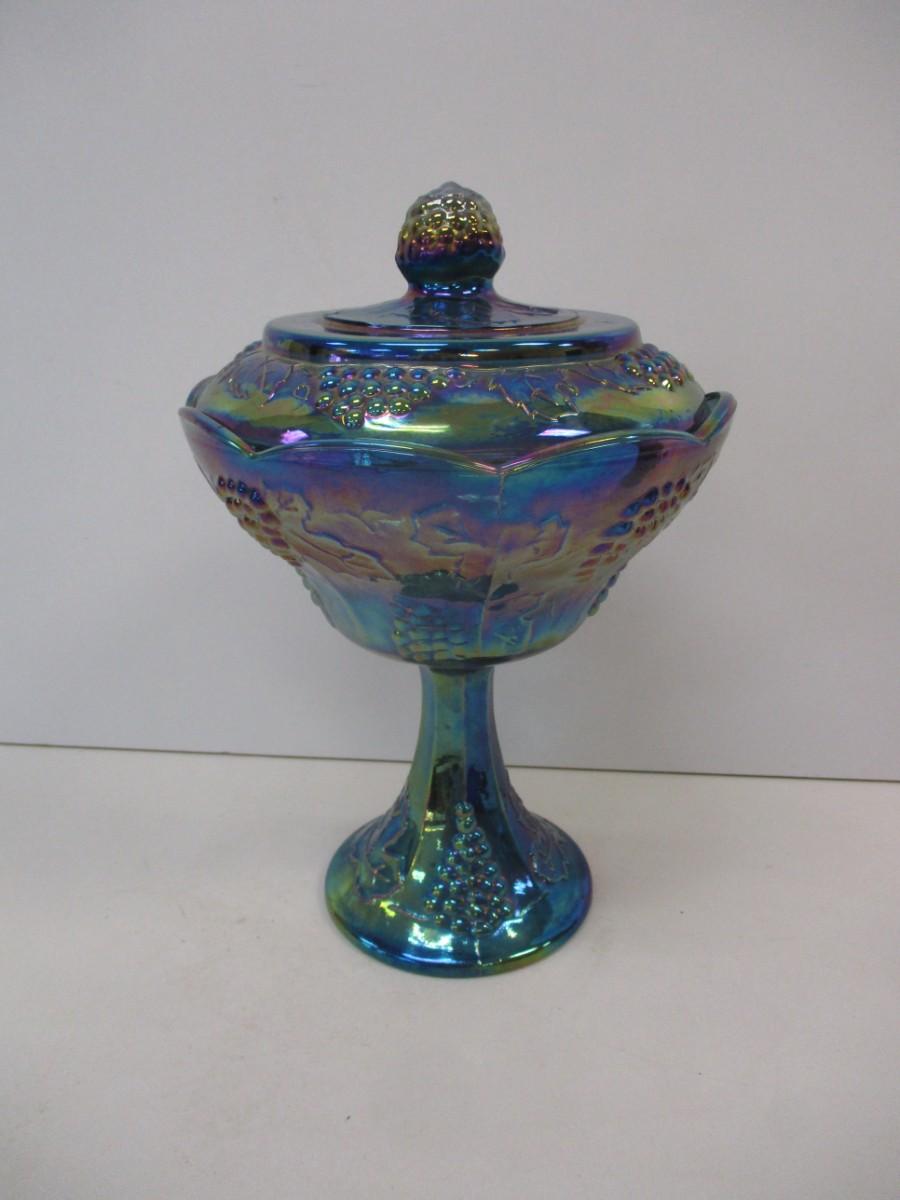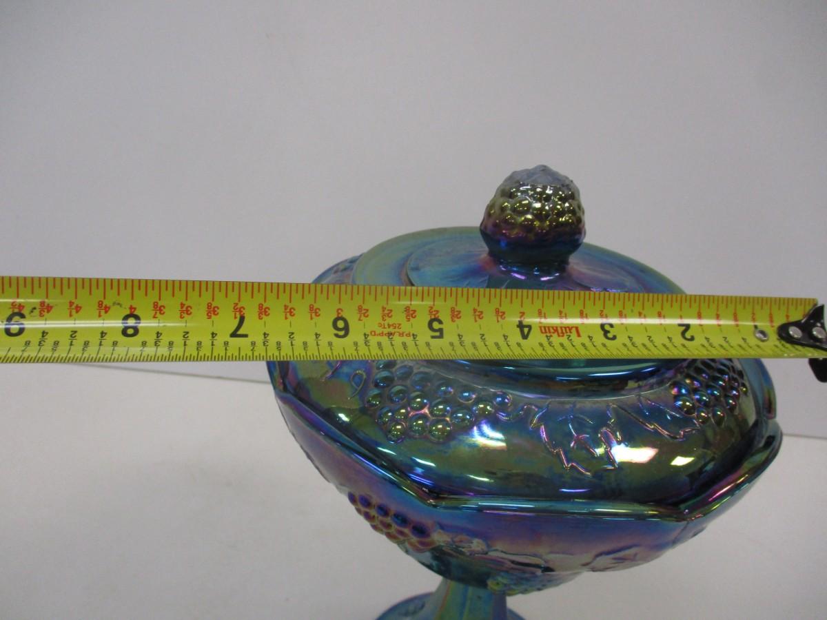Vintage 1970's Indiana Blue Carnival Glass Jar Pedestal Candy Dish