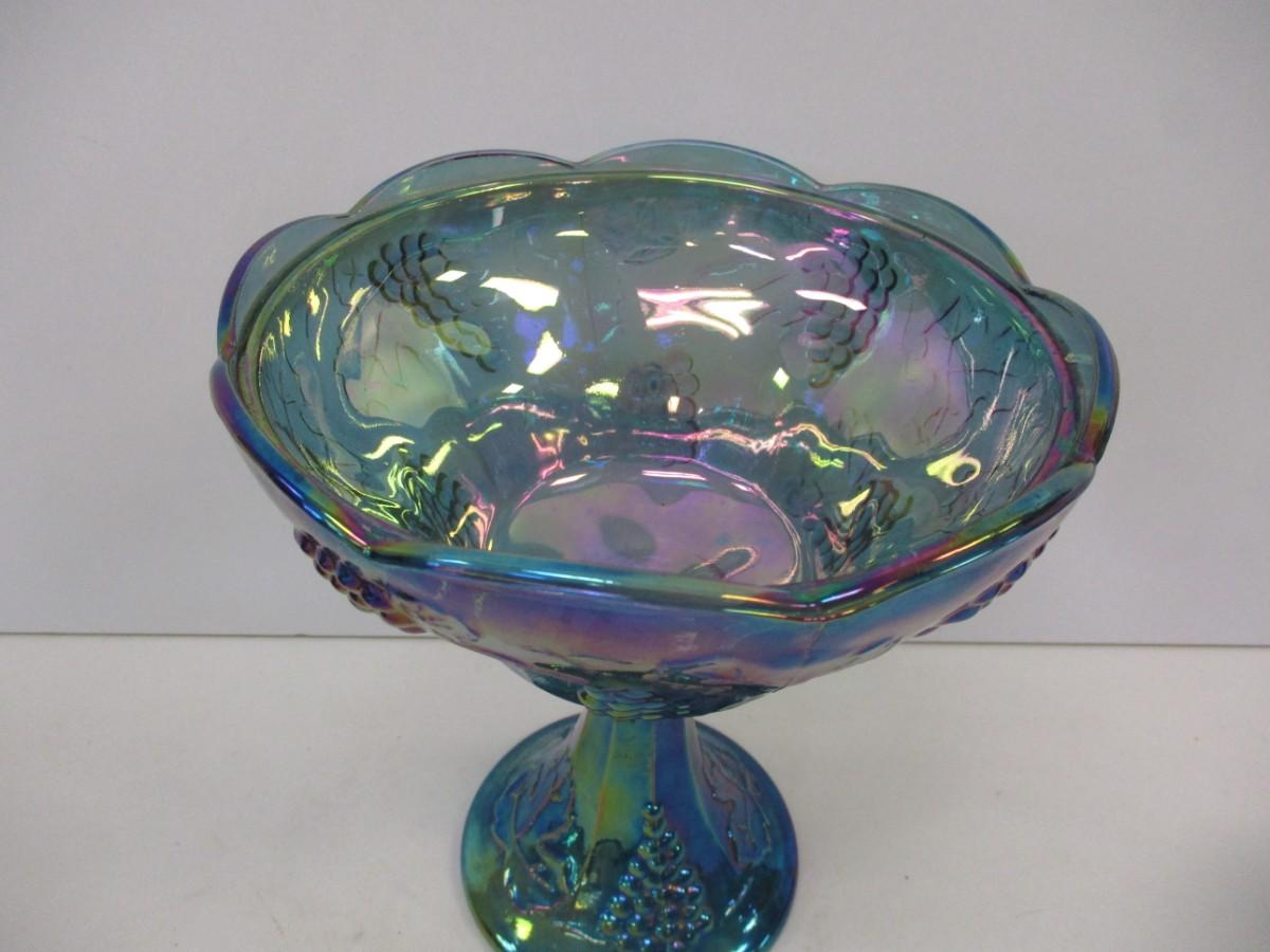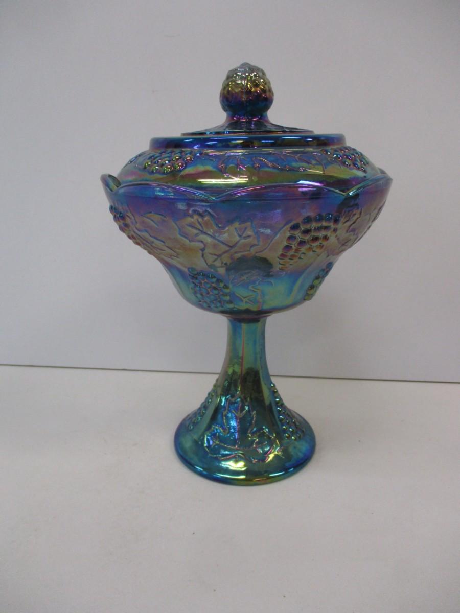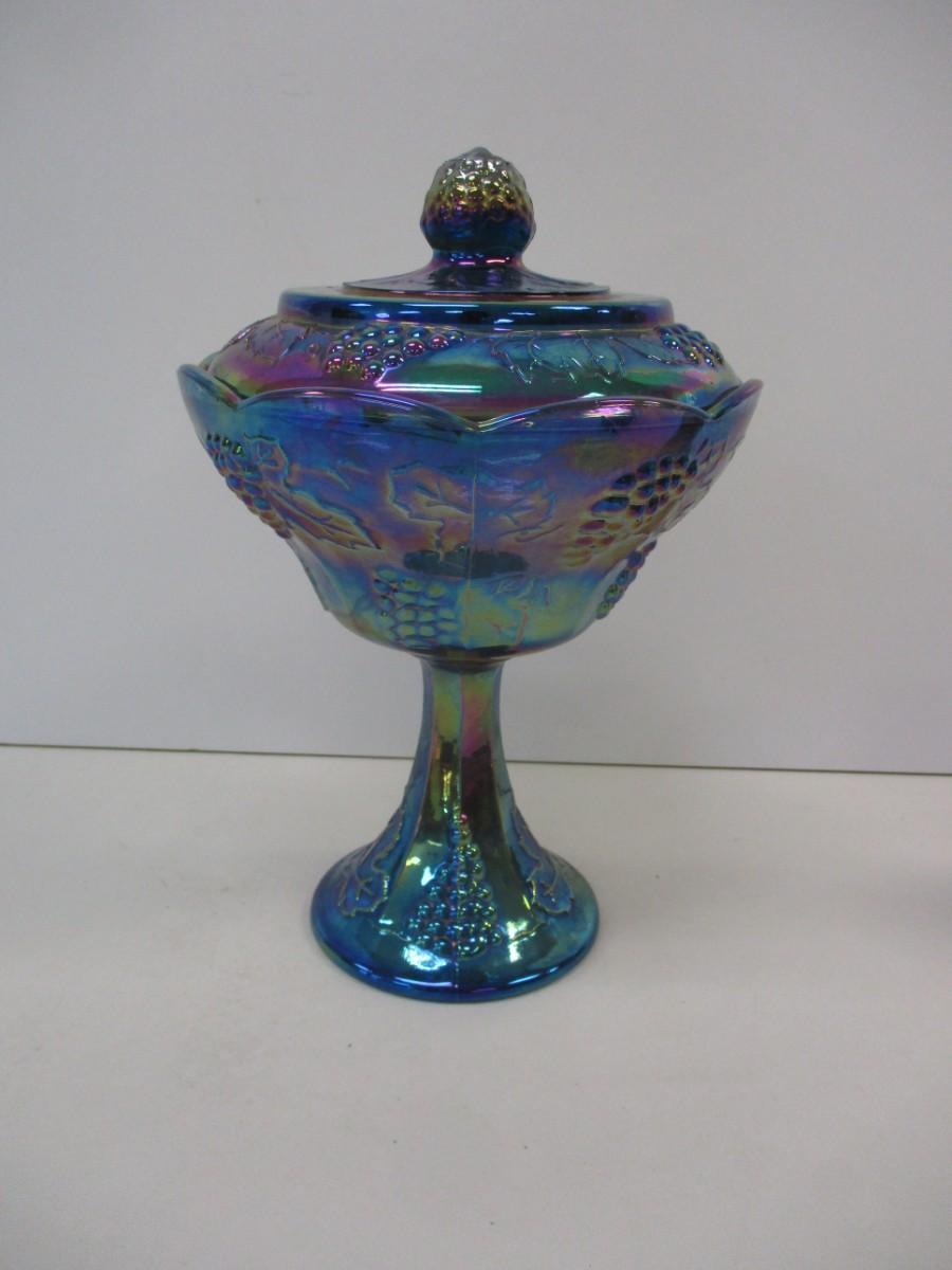 Vintage 1970's Indiana Blue Carnival Glass Jar Pedestal Candy Dish