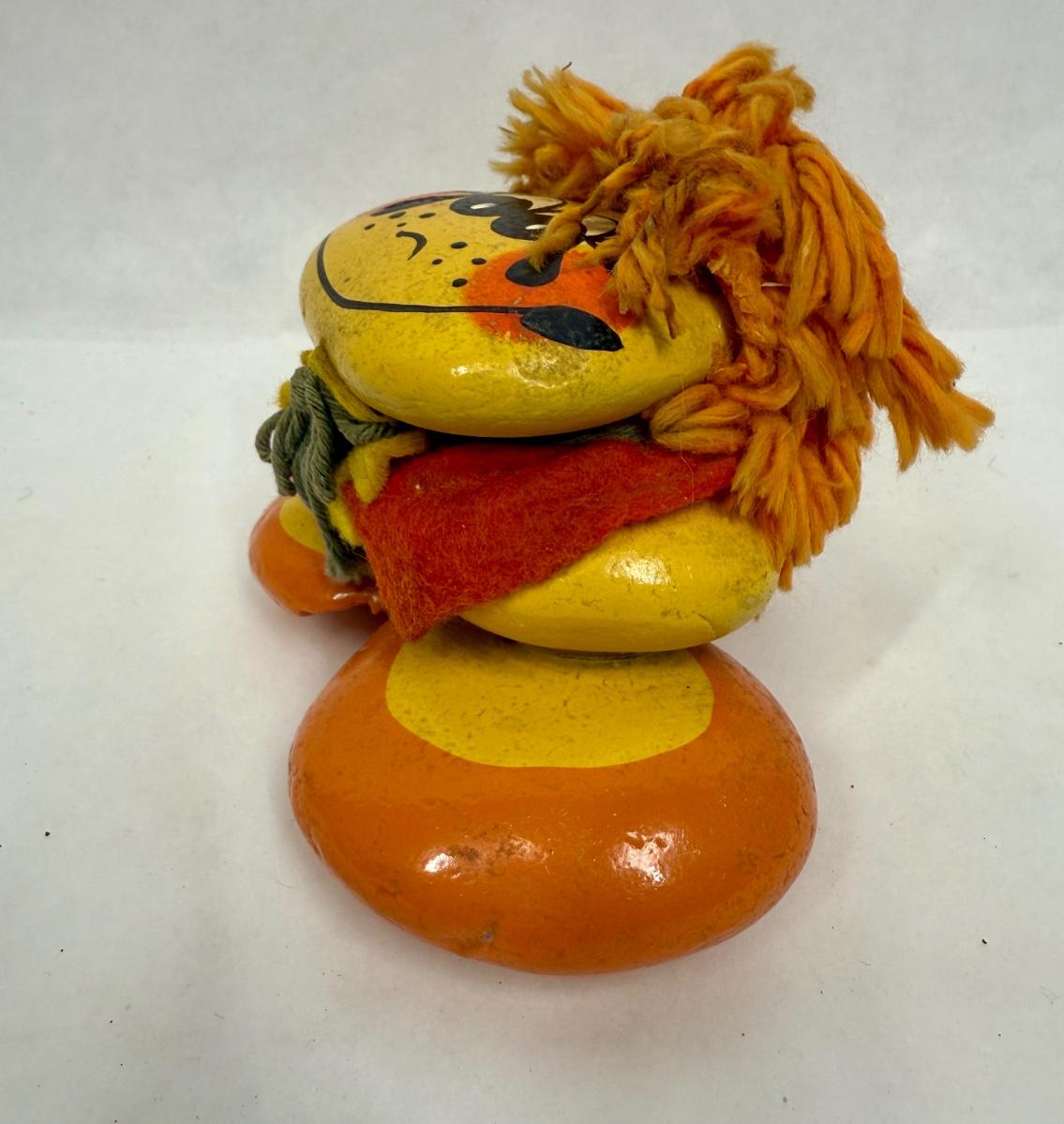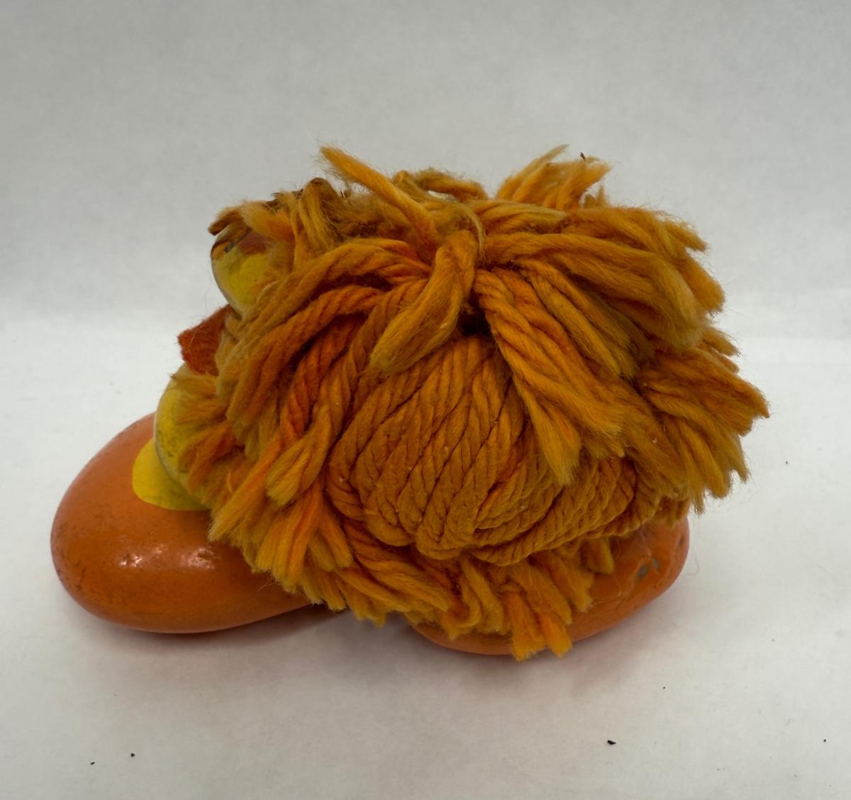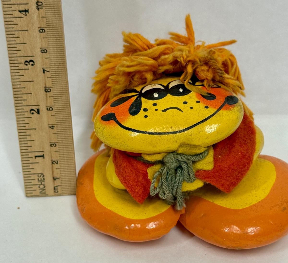 VIntage 1970's Kitsch Painted River Rock Figure Handcrafted Orange Yellow