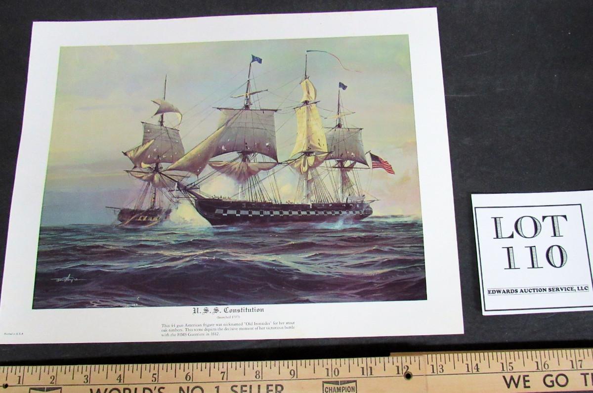 Vintage 1970s Litho, USS Constitution, 11"x14"
