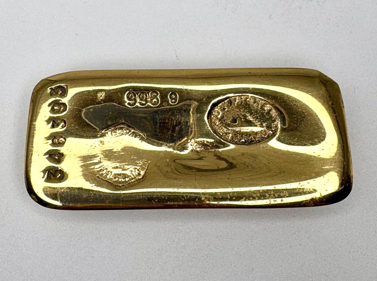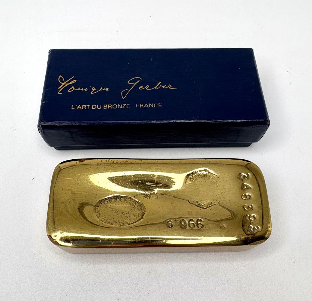Vintage 1970s MONIQUE GERBER Bronze Fake Gold Bar Paperweight