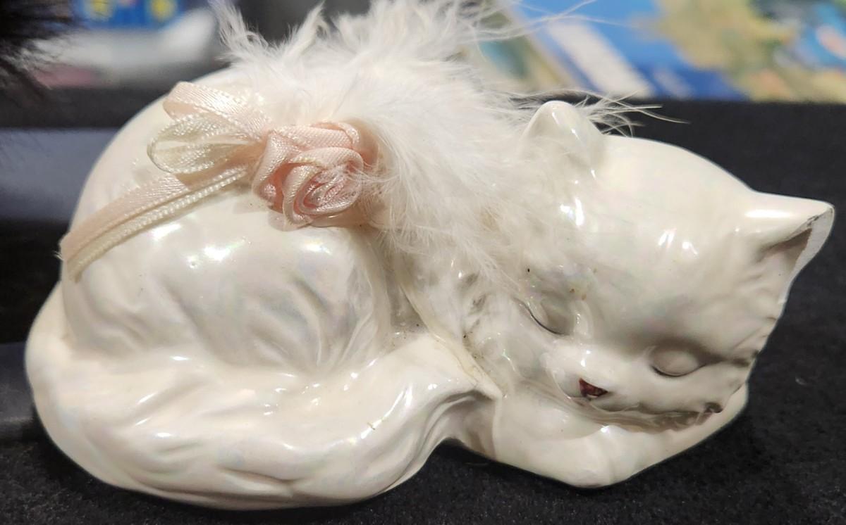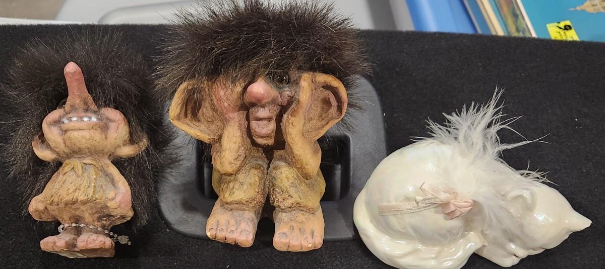 Vintage 1970s Nyform Peeping Tom Shy Peek a Boo Trolls with Retro Ceramic Cat