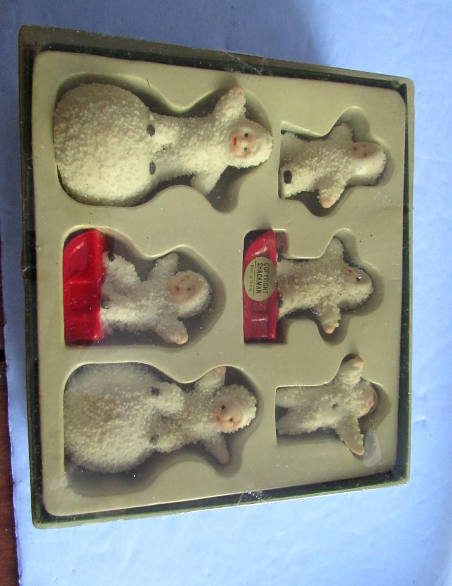 Vintage 1970s Shackman's Imports Snowbabies Set From Japan and One Older Japan Snowbaby Miniature