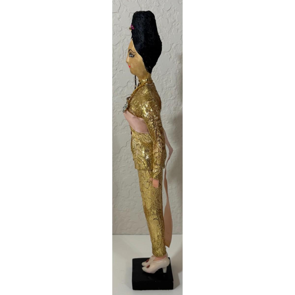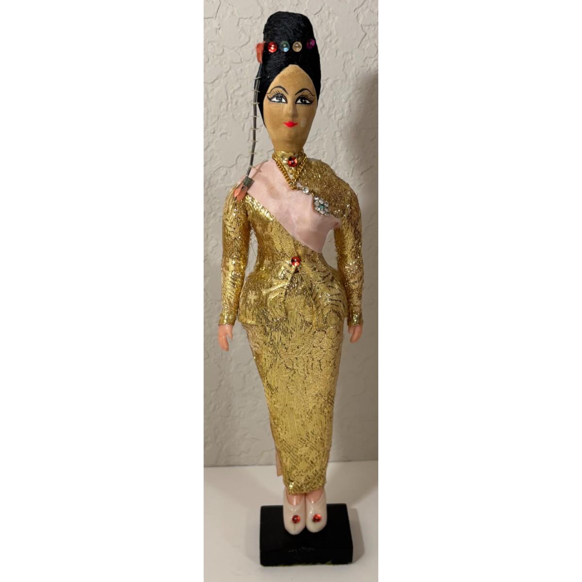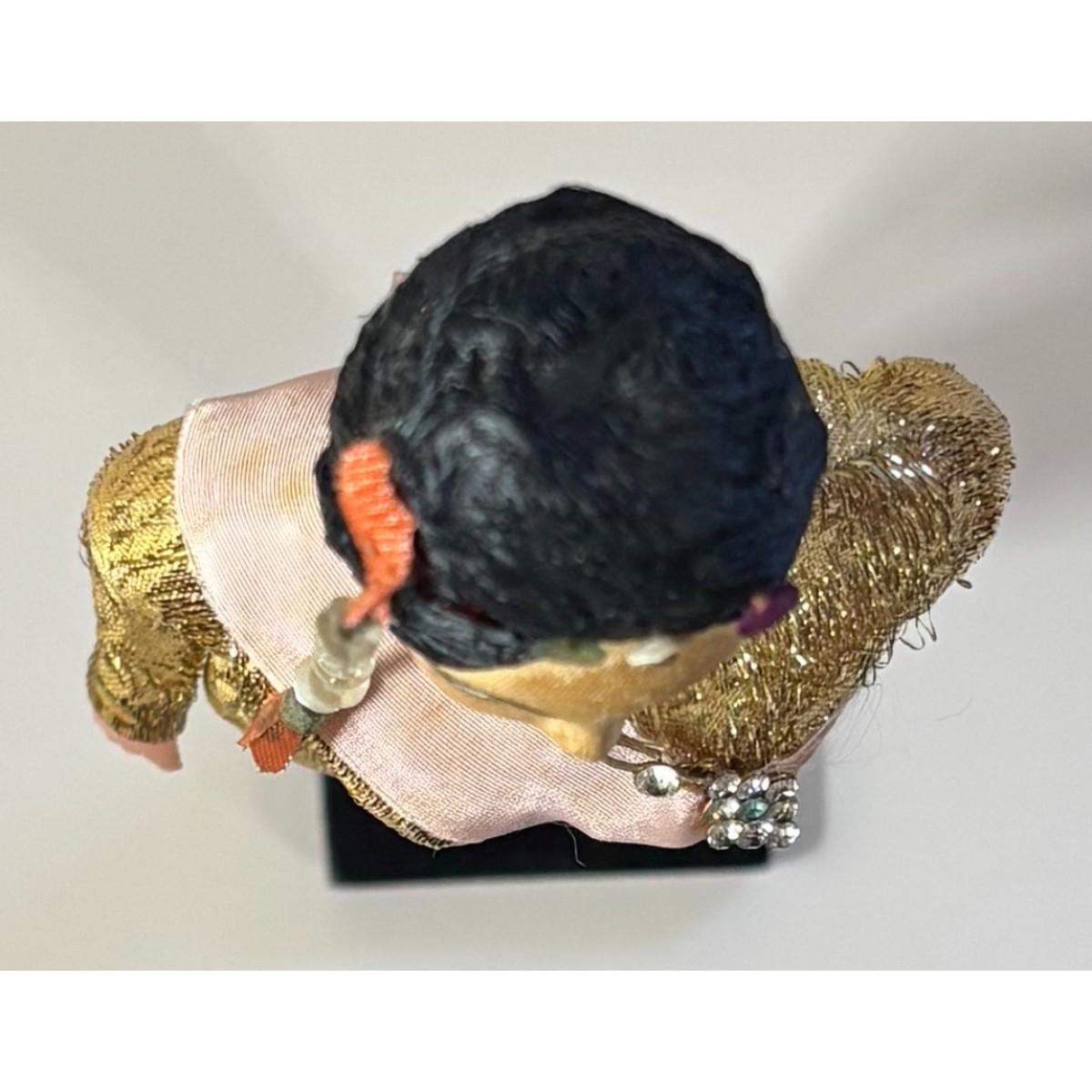Vintage 1970s Thai Dancer Doll Gold Dress Painted Face Display Stand