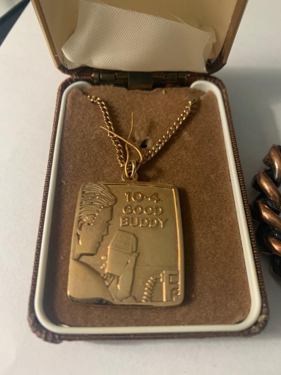 Vintage 1970s Trucker CB Pendant Necklace + Self Standing Chain Bracelet