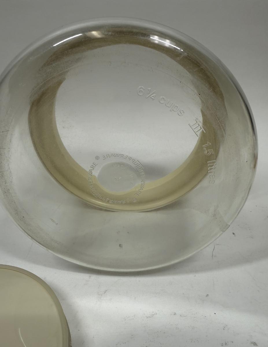 Vintage 1970's Tupperware Clear 6 1/4 Cup 1.5 Liter Container Canister Almond Lid