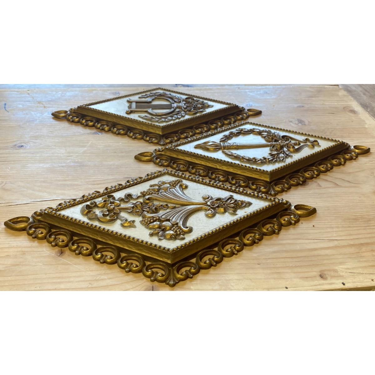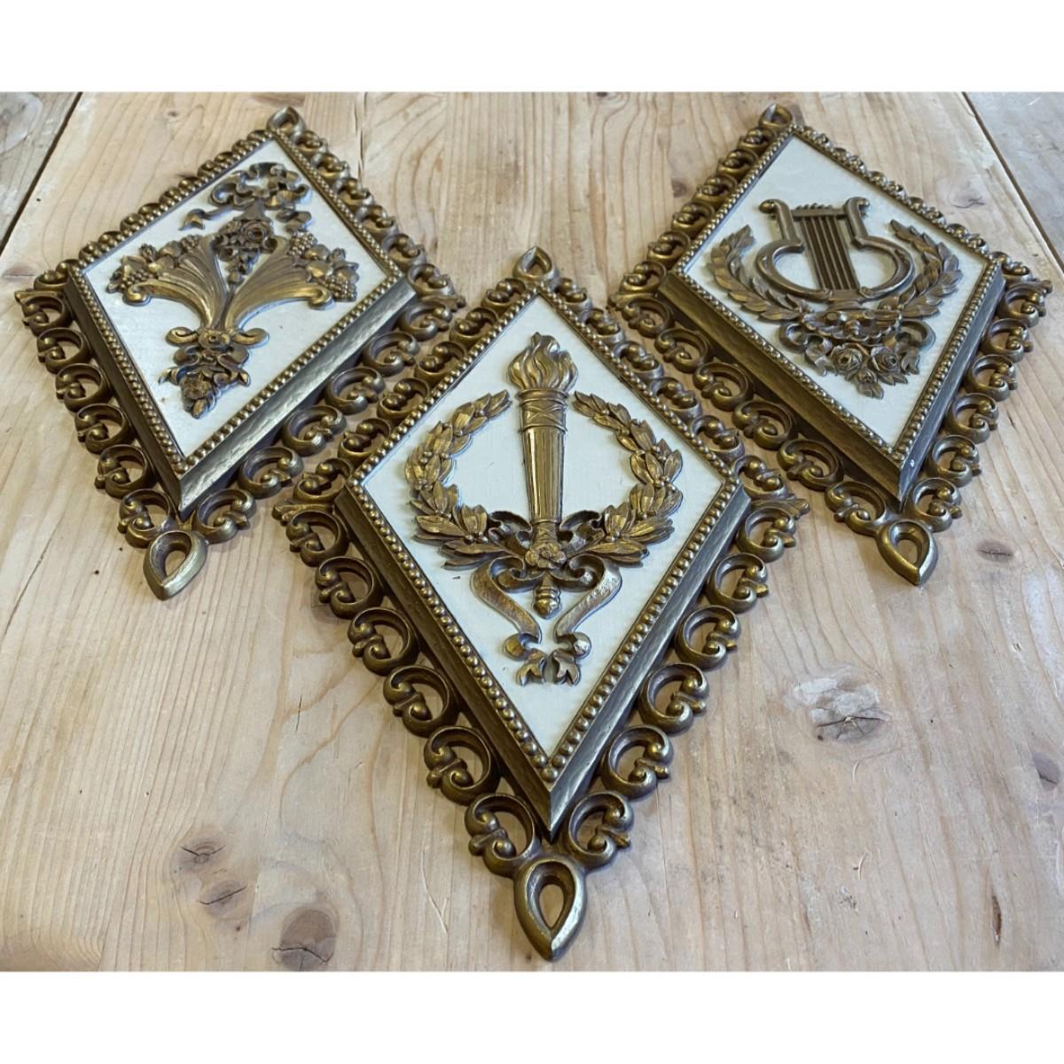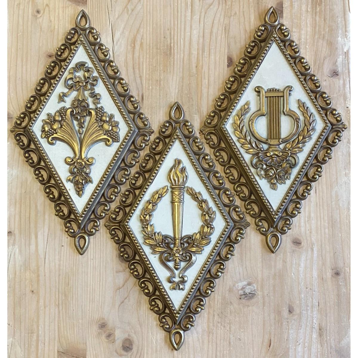 Vintage 1971 Homco Dart Gold Torch Accent Wall Plastic Plaque Set of 3