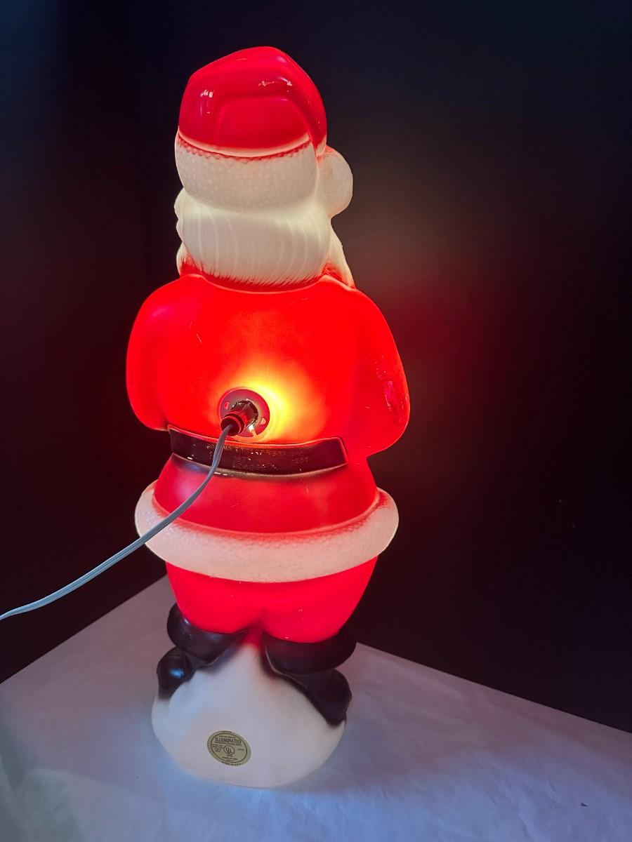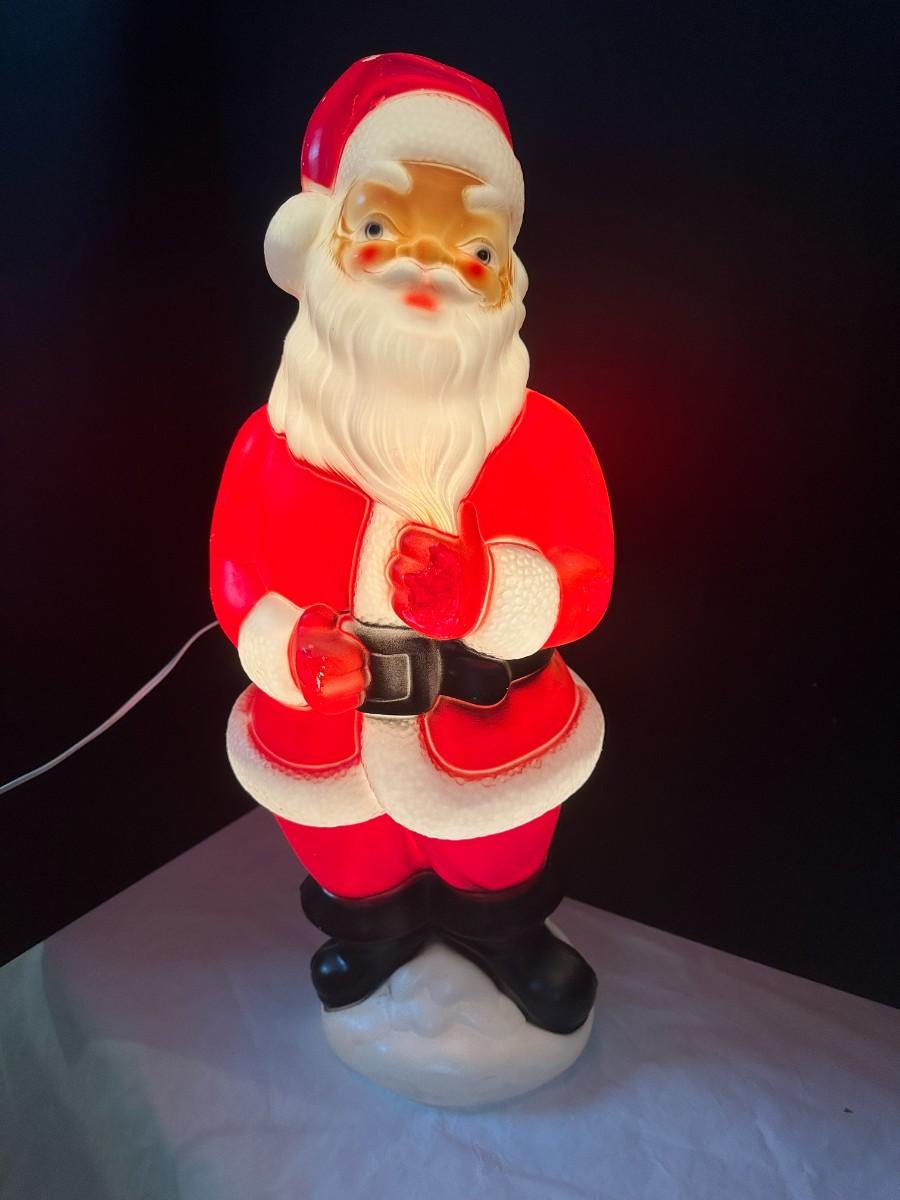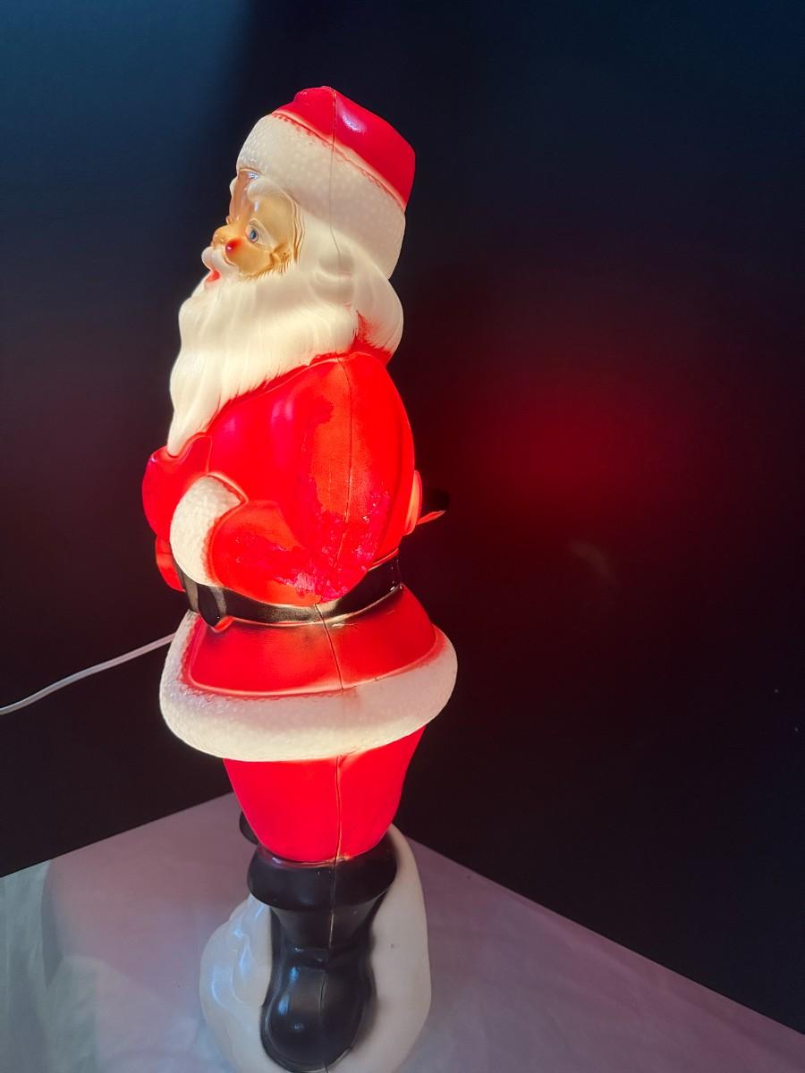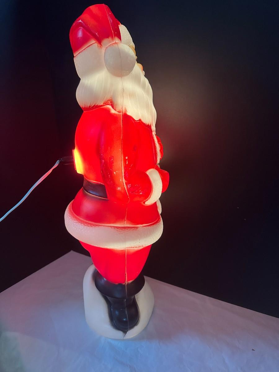 Vintage 1973 Jolly Santa Blow Mold. 22" tall with lights. In very good condition with just small sections missing paint. Very bright. Companion Jolly Snowman also up for sale.