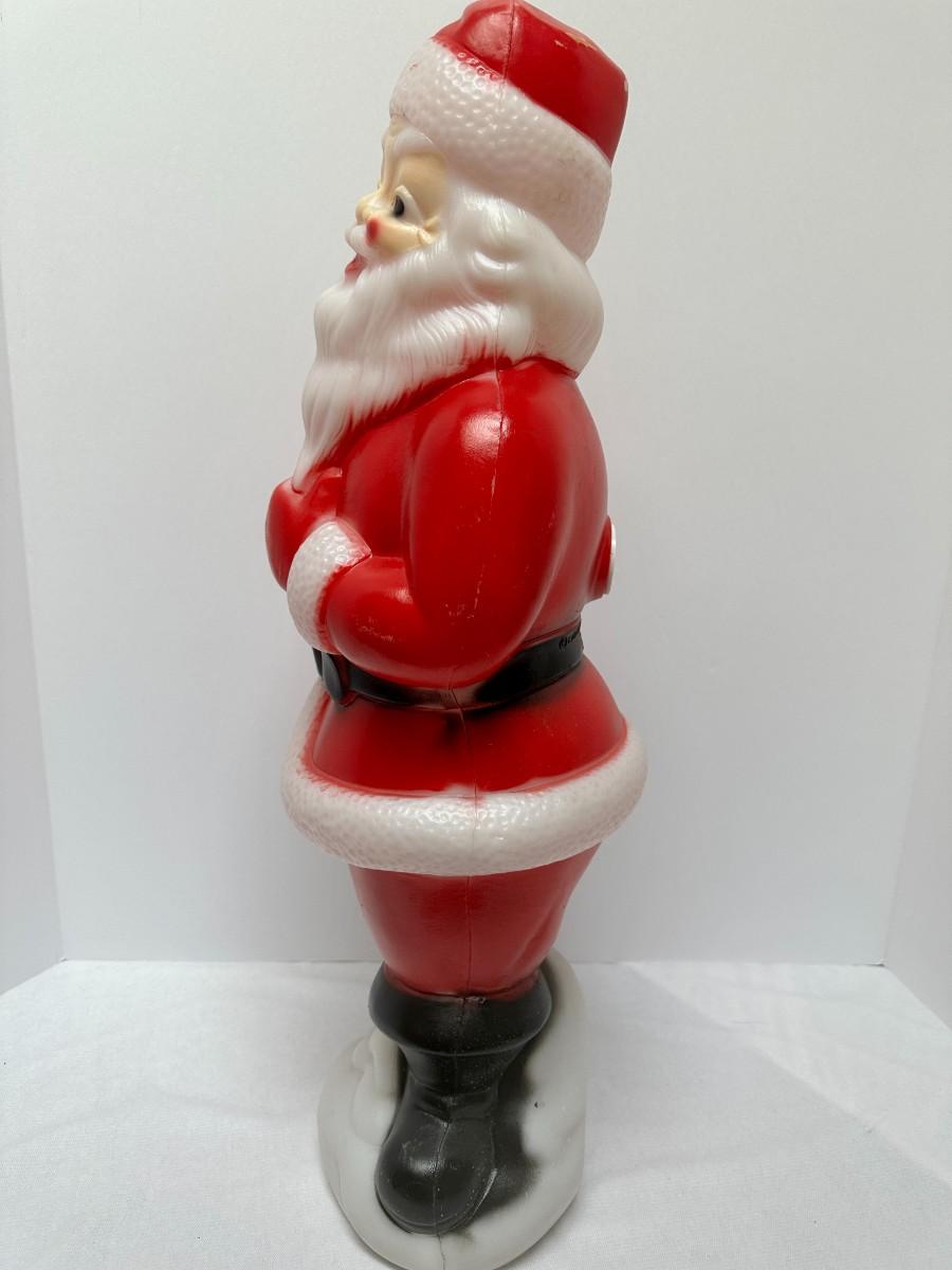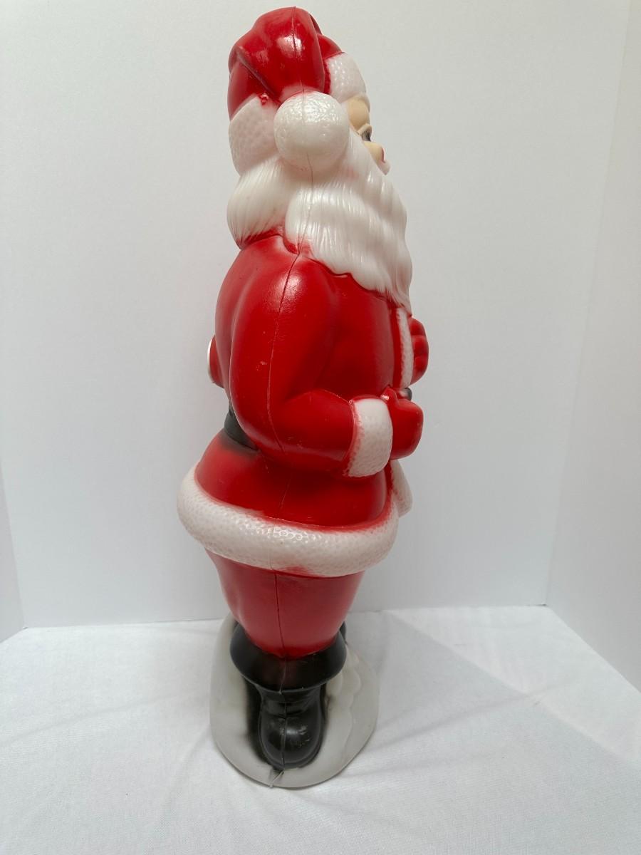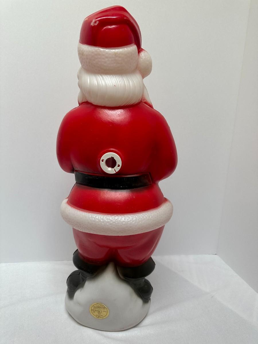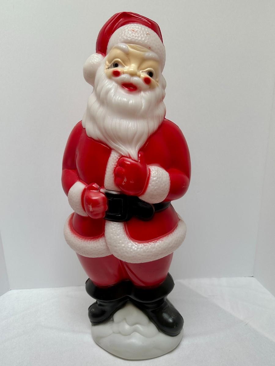 Vintage 1973 Jolly Santa Blow Mold. 22" tall with lights. In very good condition with just small sections missing paint. No light cord. Uses E12 Candelabra Light Kit. $7 on Amazon.
