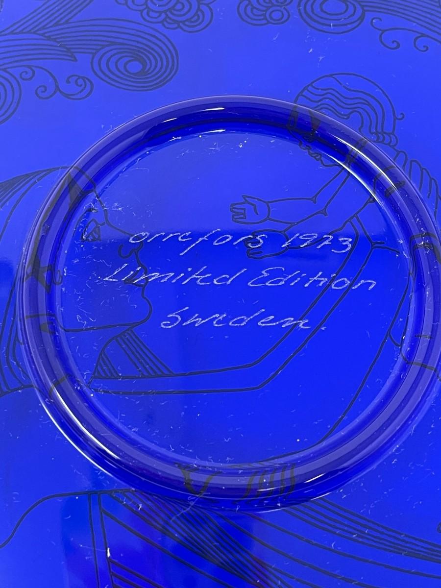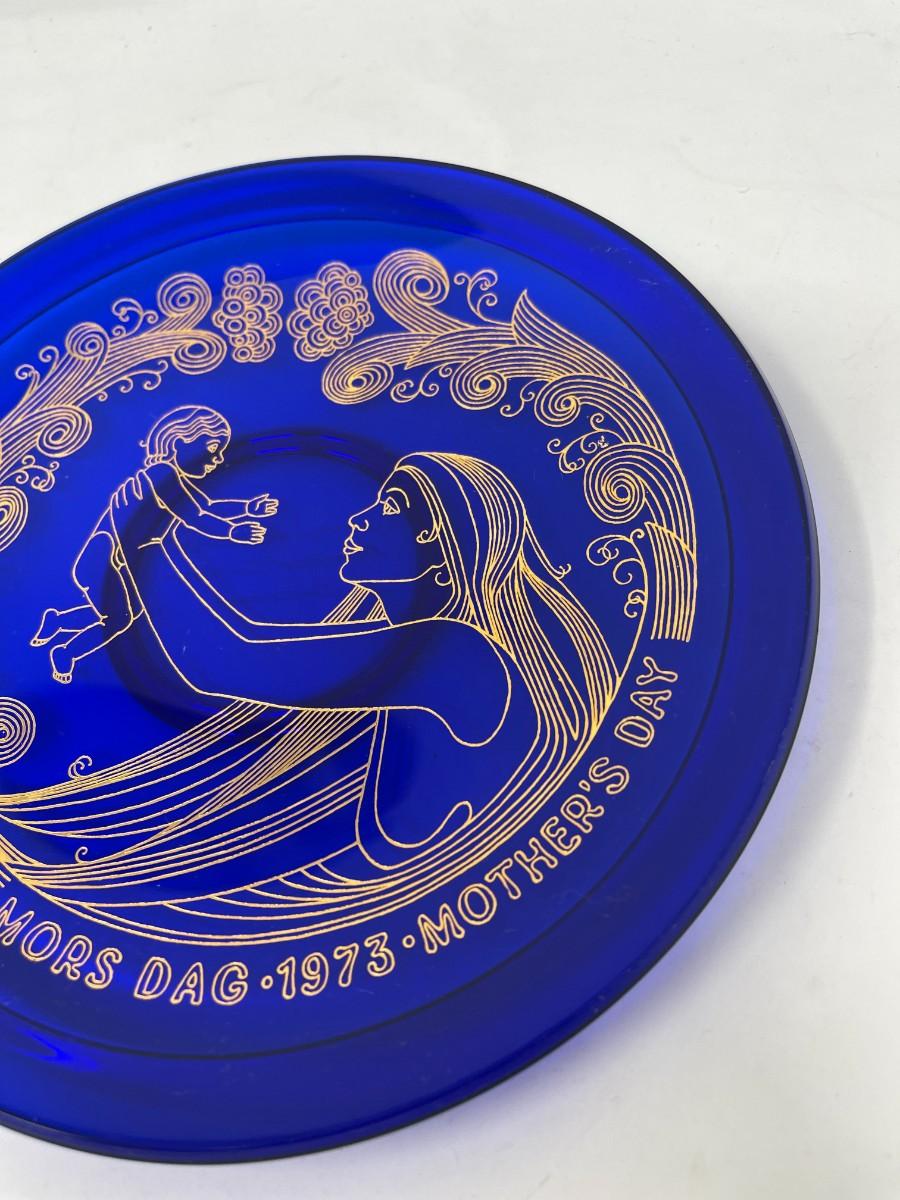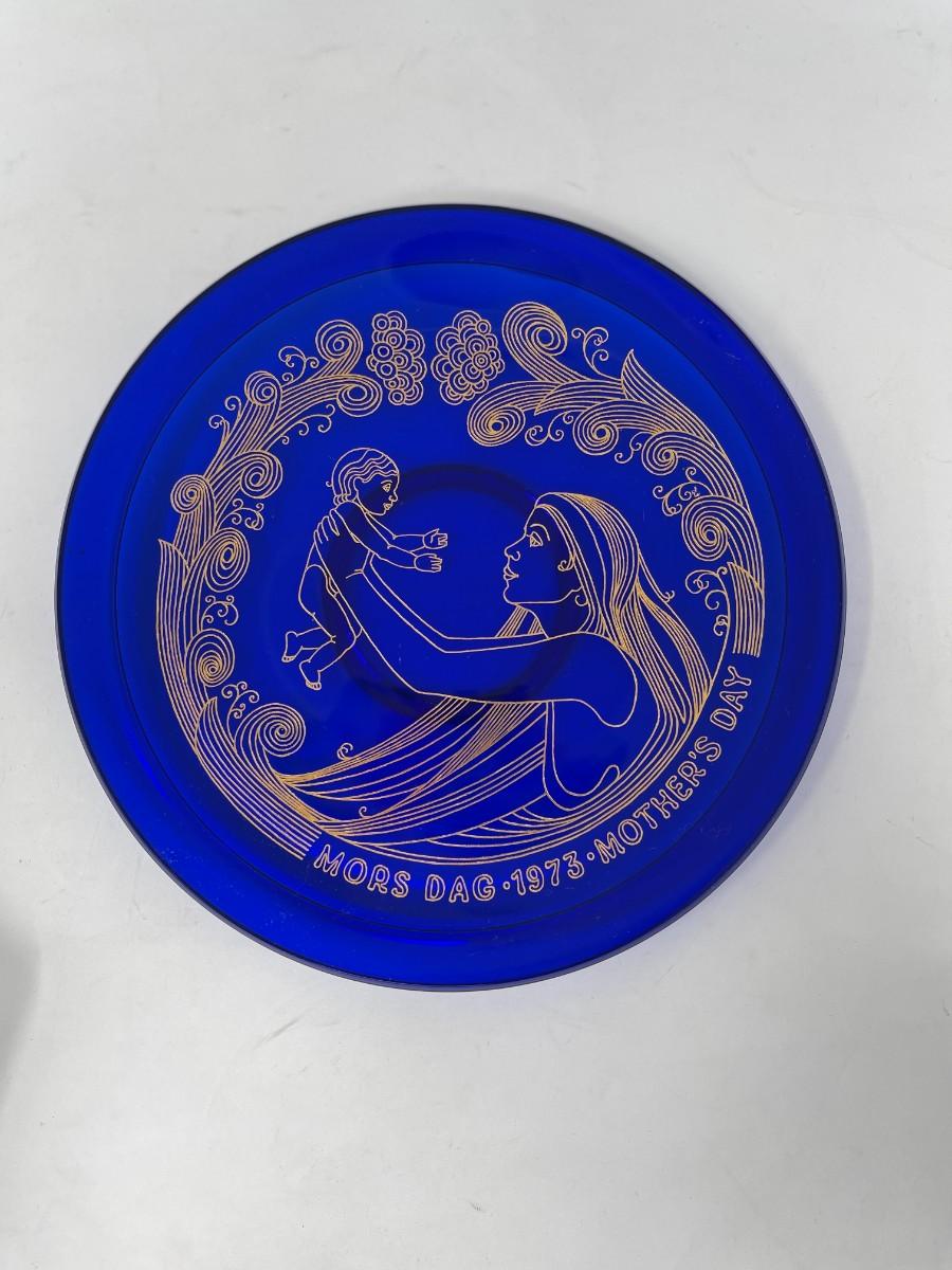 Vintage, limited edition, 1973, cobalt blue glass Mother's Day plate by Orrefors, Sweden. Plate is in excellent condition and comes with original box, 8". # 490