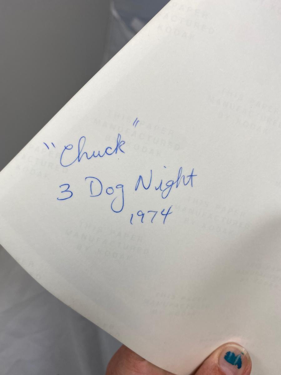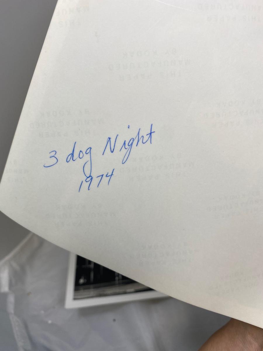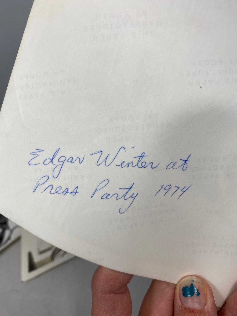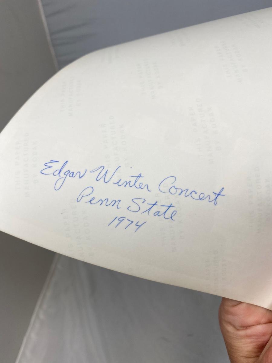 Vintage lot of amateur photographs of Edgar Winter Band and Three dog Night from 1974. Photographer was a student at Penn State during the time these were taken. Includes a copy of the photo negatives taken from the Edgar Winter release party. Rare photos. 8x10 size. No COAs.