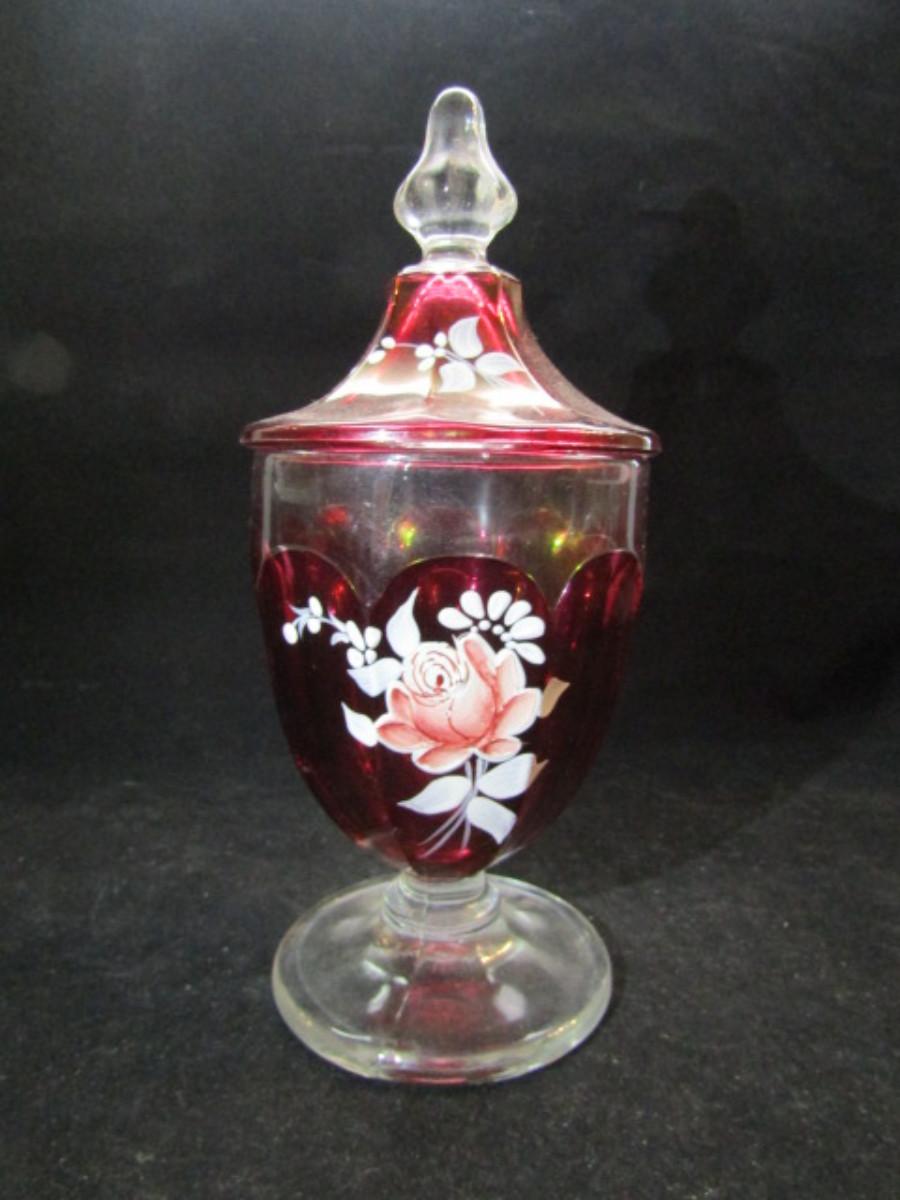Vintage (1975) Hand Painted Urn Design Candy Dish with Lid- Possibly Fenton (#143)