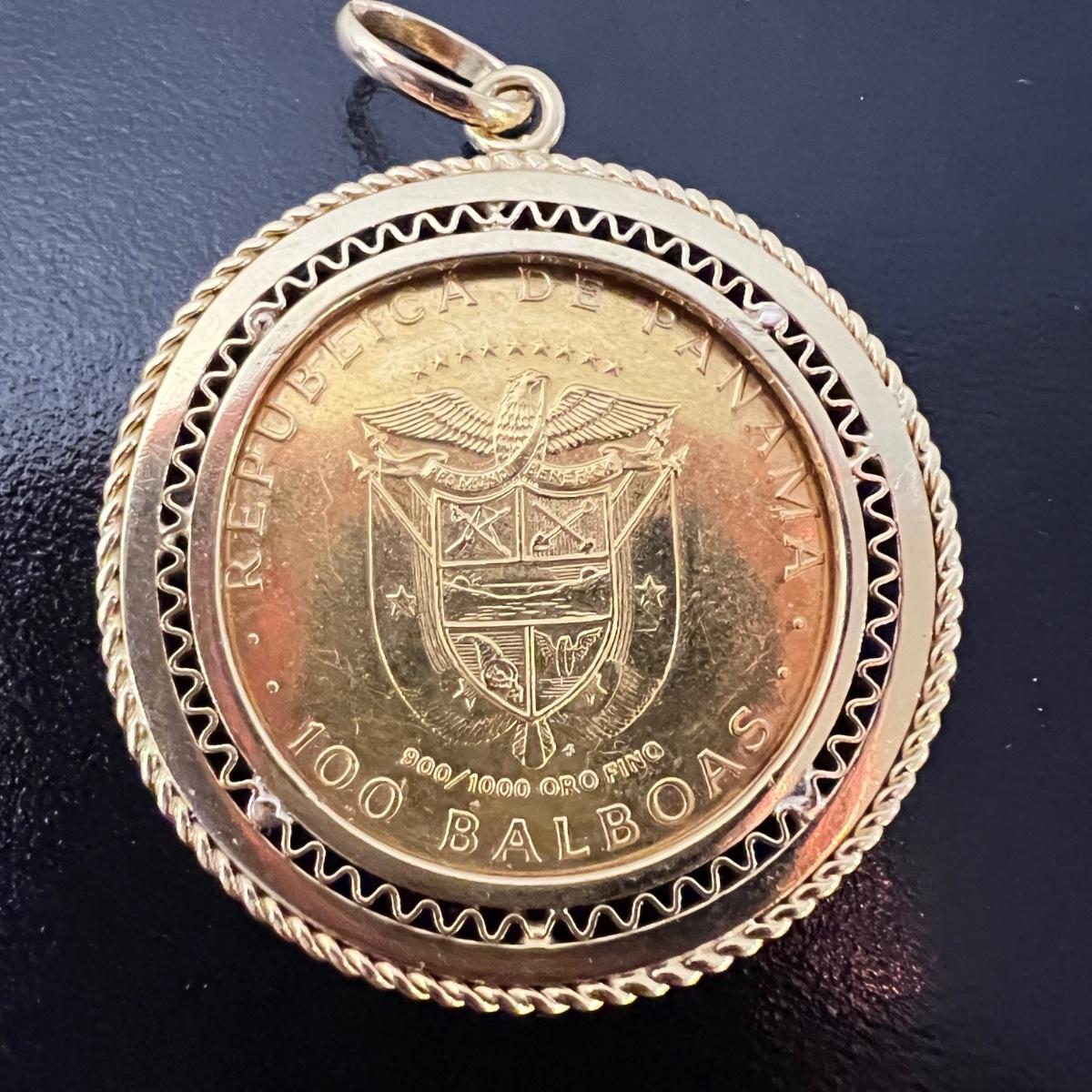 Vintage 1975 Panama 100 Balboa Gold Coin Pendant