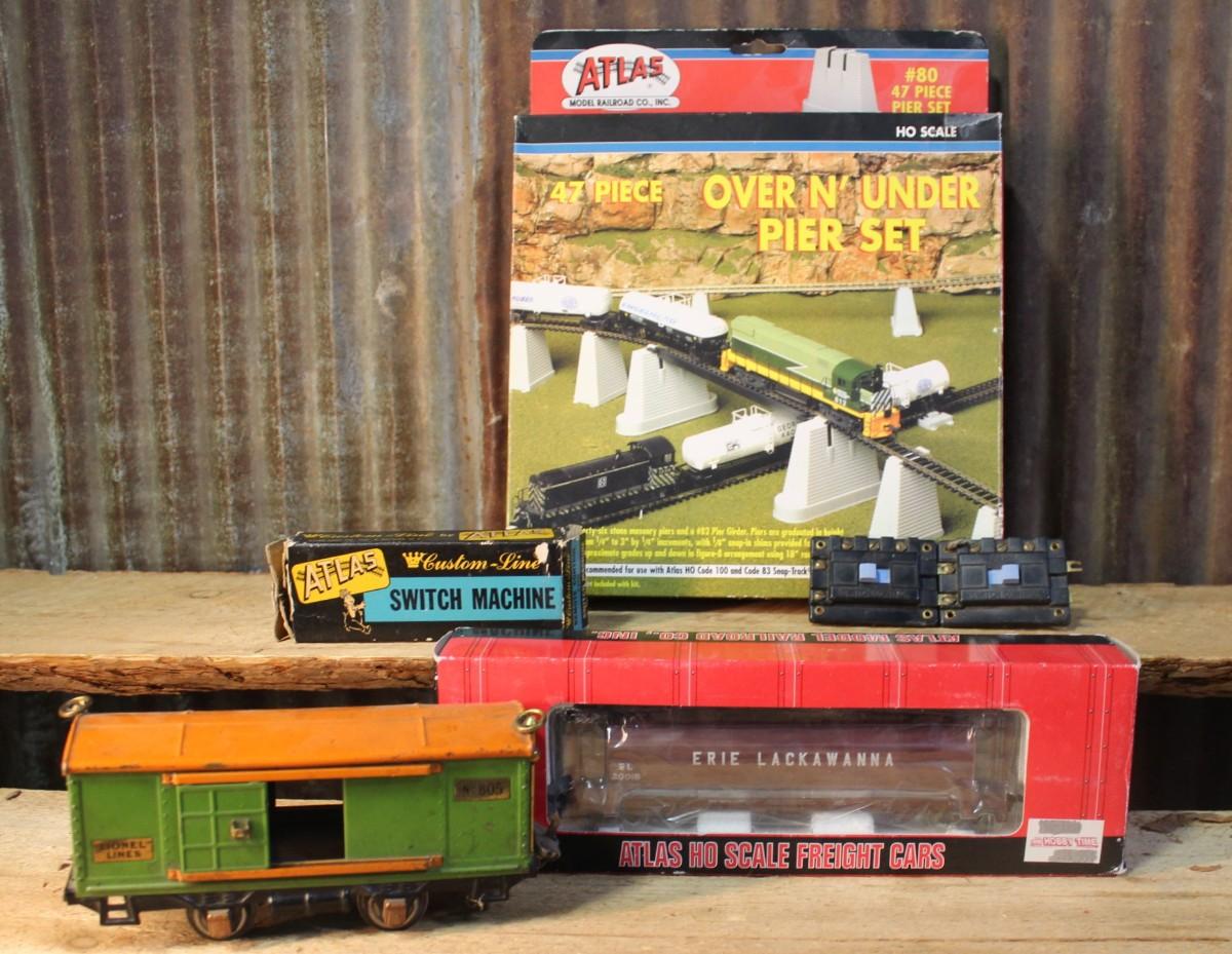Atlas Pier Set, Switch Machine ( 1 Loose 1 in Box ) Freight Car & 1 Lionel Tin Box Car All in Good Usable Condition or New - Winning Bid Buys All Items Shown, All Item(s) are Sold As Is - Photo's Are Part of the Description - Pickup by Appointment, or Shipping is Available (Buyer Pays)