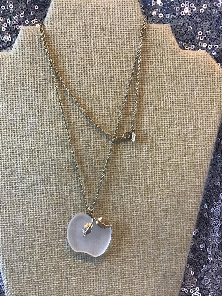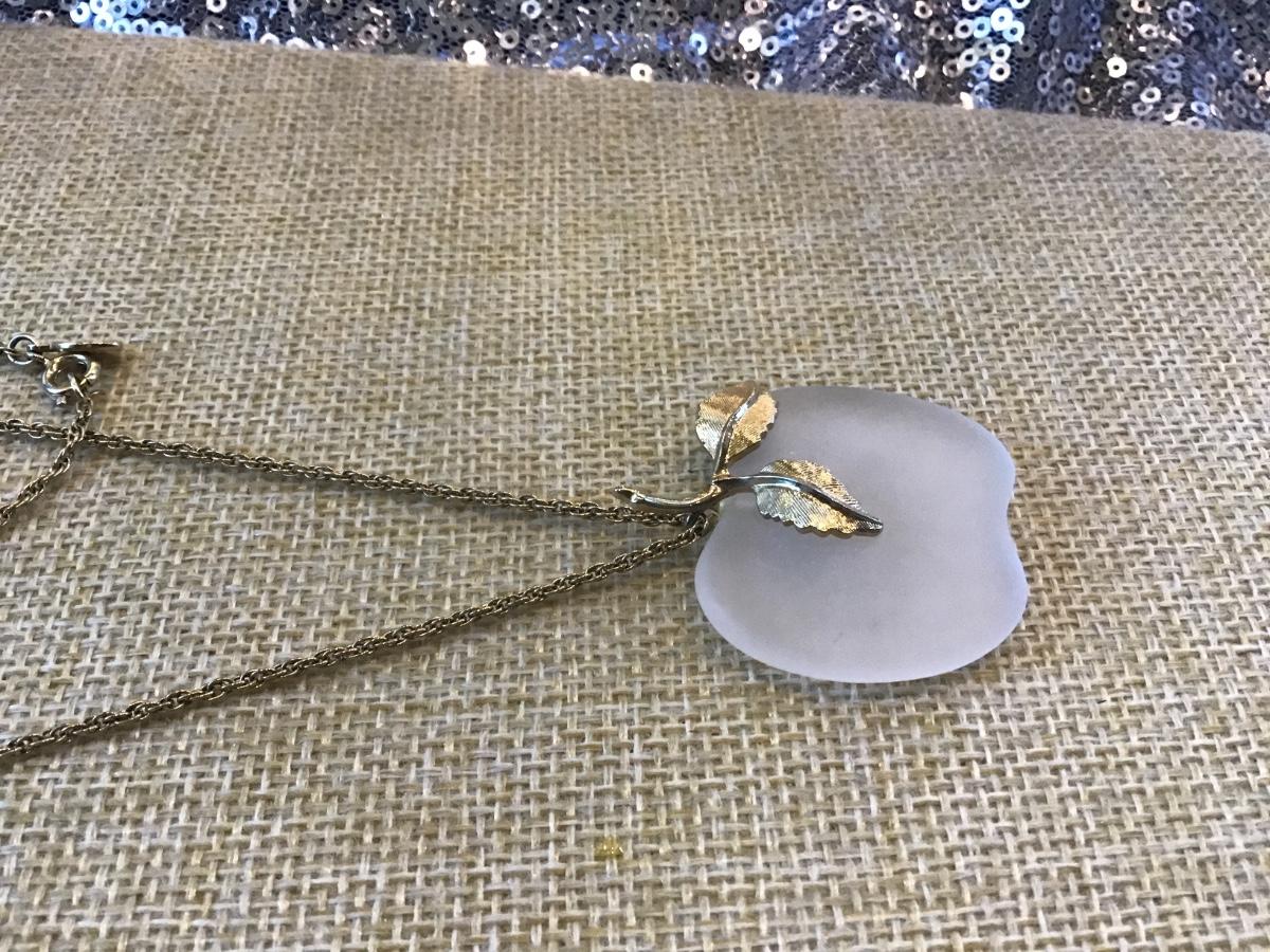 Vintage 1978 Avon Genuine Frosted Lead Crystal Apple-Shaped Pendant Necklace