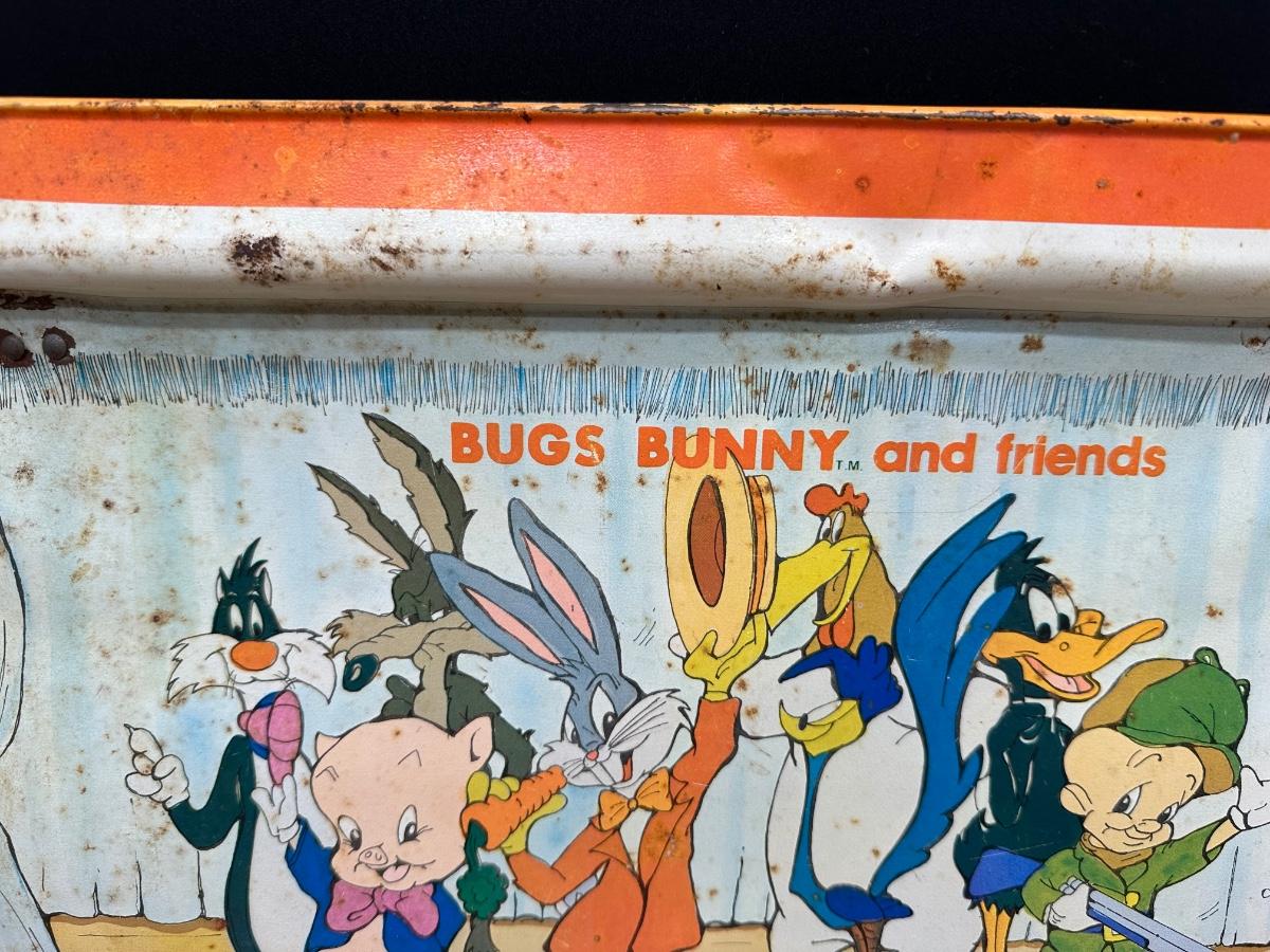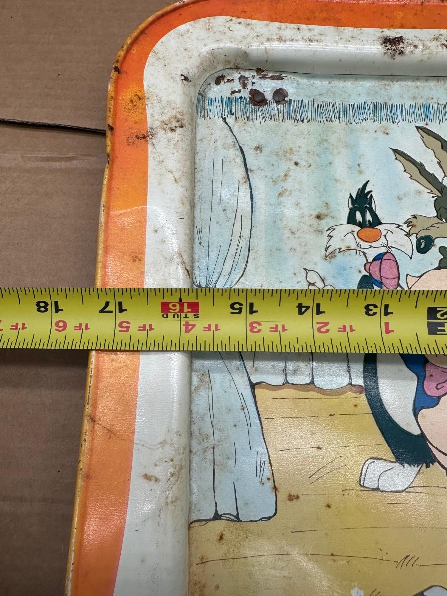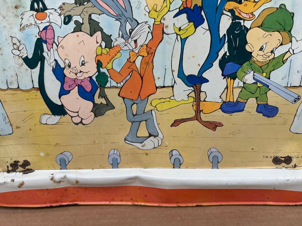 Original 1979 Warner Bros. “Bugs Bunny and Friends” metal serving tray featuring Bugs Bunny, Porky Pig, Sylvester, Foghorn Leghorn, Road Runner, and Elmer Fudd.