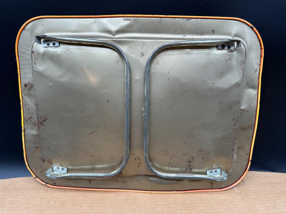 Rectangular tray with rolled edges. Displays great for a game room, bar, cartoon collection, or vintage kitchen décor.