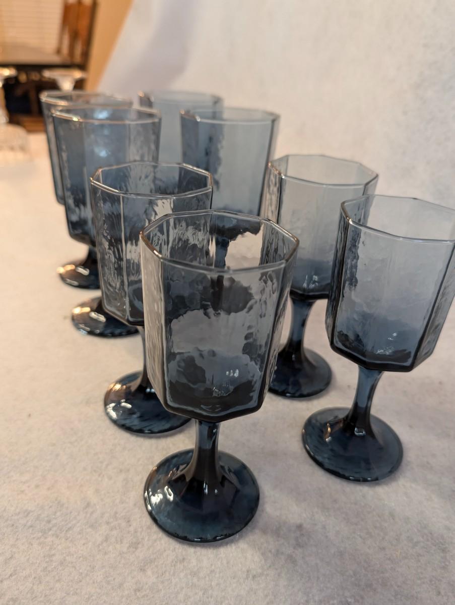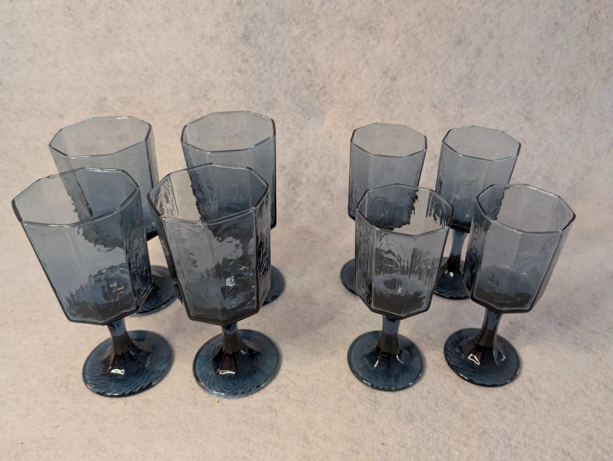 Vintage 1980s 8 pc Libbey "Facets" Octagon Shaped Glasses