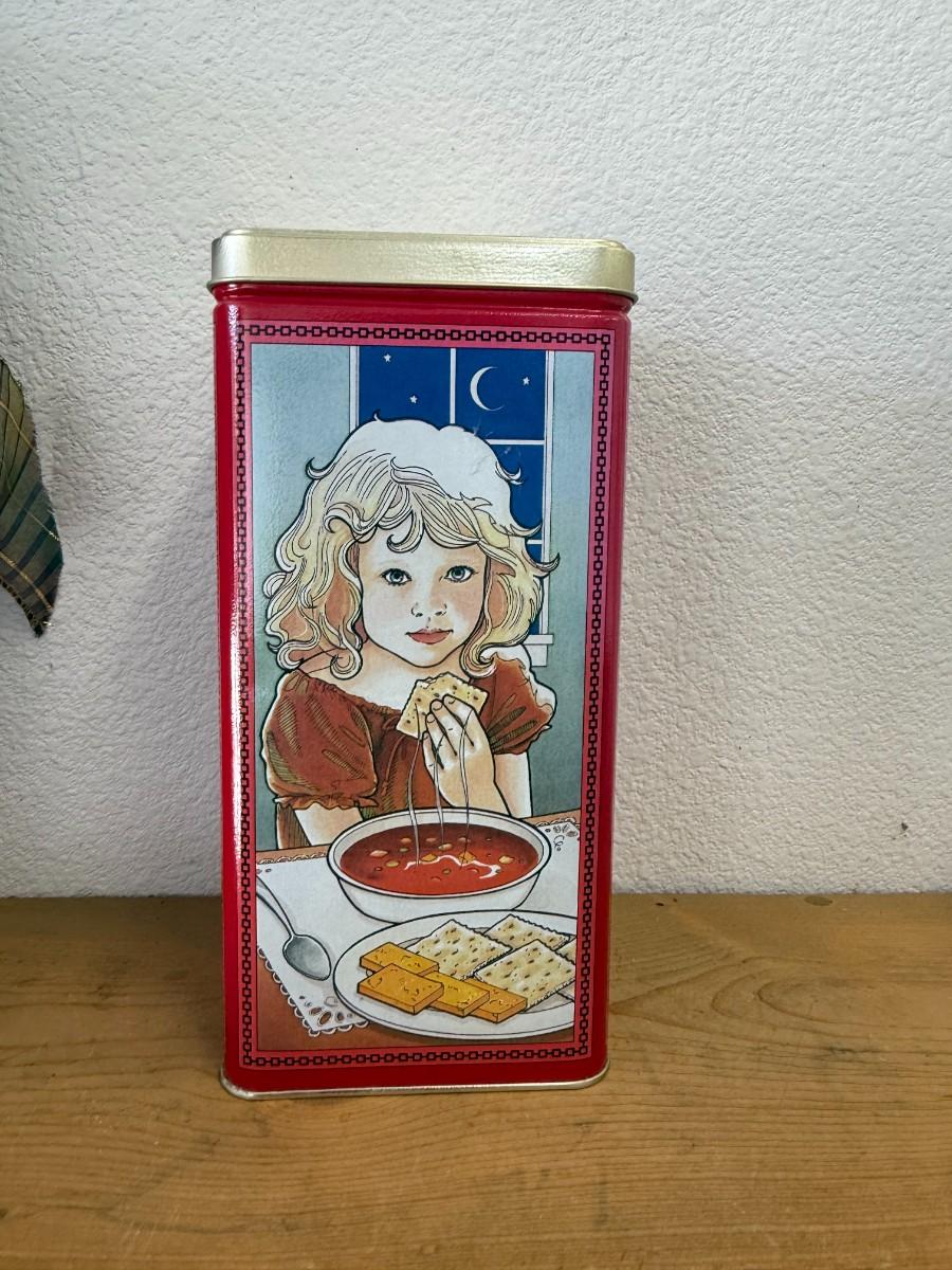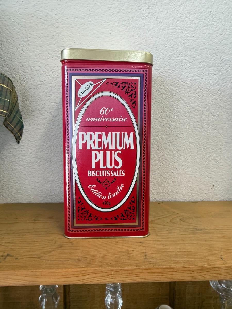 Vintage 1980s Christie Premiun Plus Crackers, 60th Anniversary limited Edition Tin, Gorgeous, Bilingual (English/French), Gorgeous Red