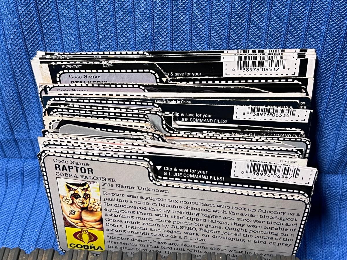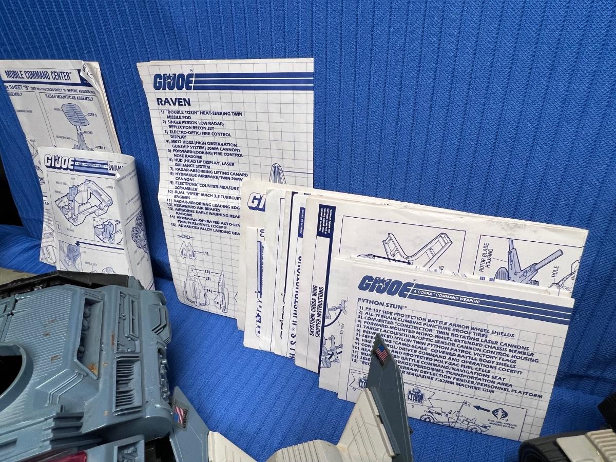 In addition to pictured vehicles, there are 16 sets of instructions and more than 50 cardboard cutout file cards. It appears there are pieces missing from some vehicles.