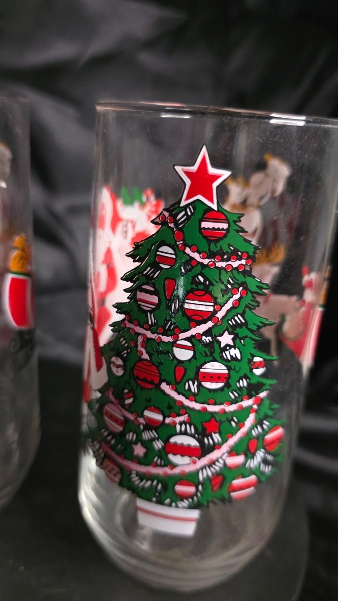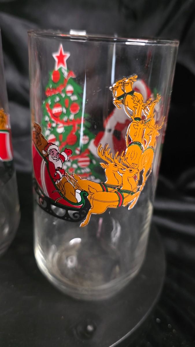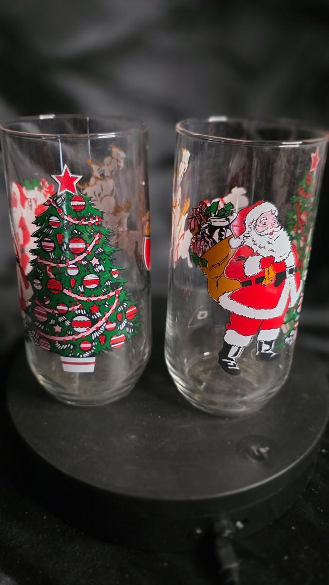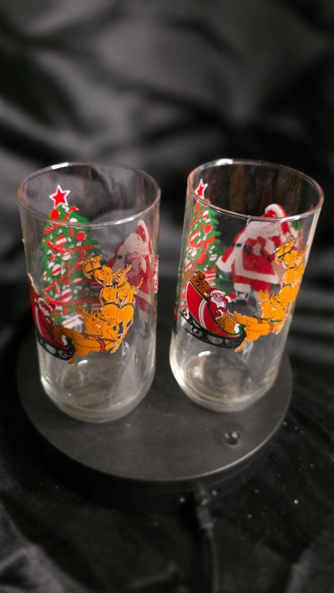 Their bold colors, crisp lines, and joyful imagery evoke the magic of childhood Christmas mornings and the glow of family traditions. Whether displayed as festive décor, used for holiday cocktails, or gifted to a collector of retro barware, they bring a touch of spirited merriment to any space.