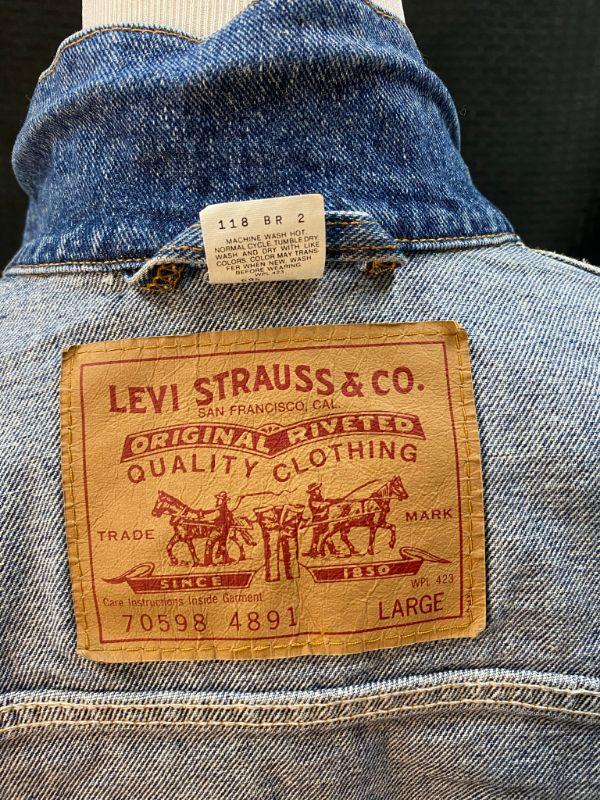 Vintage 1980s Levi's Trucker Jacket. Classic blue denim. Size Large. Style #70598 4891. Good condition.