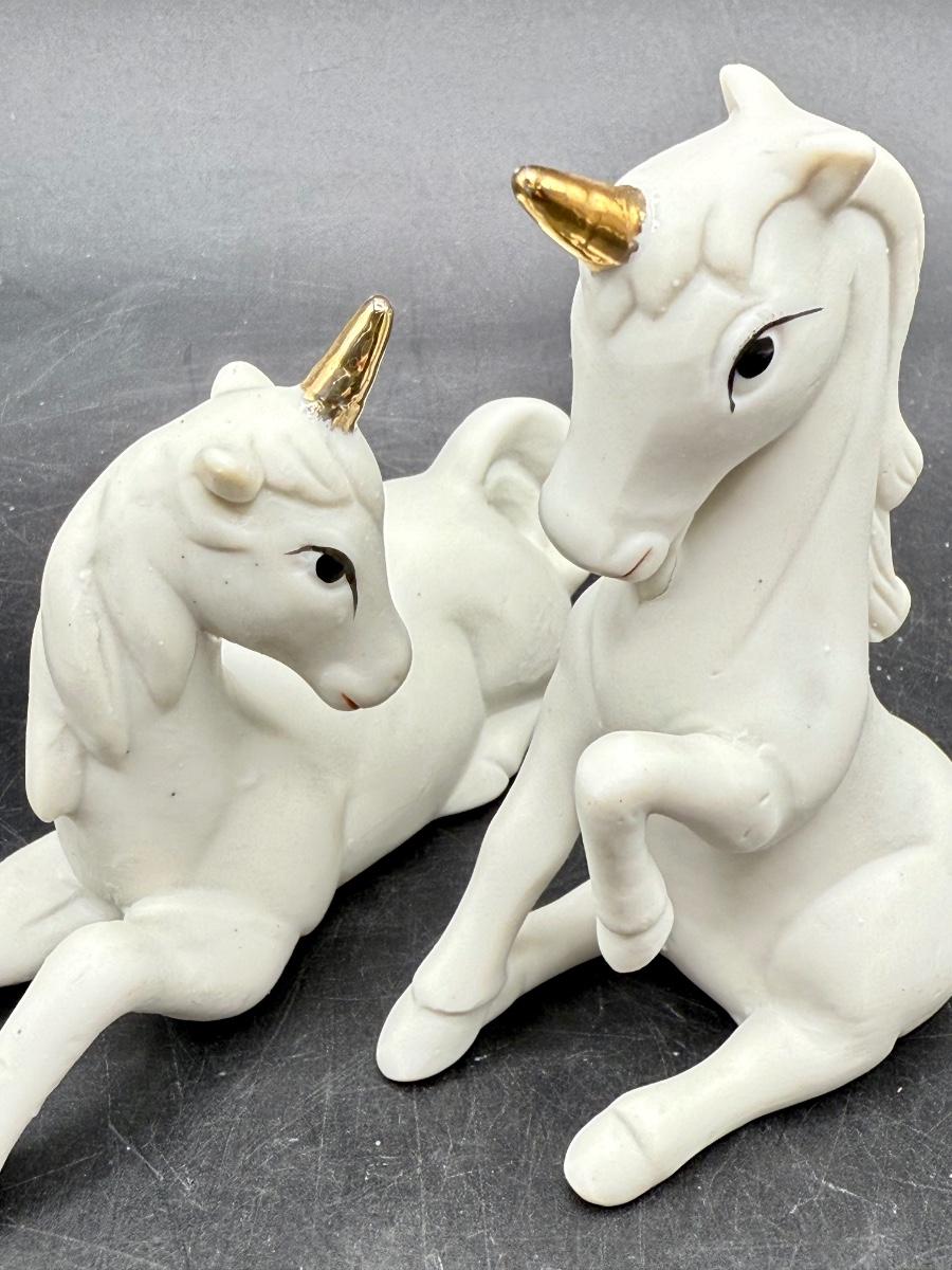Vintage 1980’s White Porcelain UNICORN Figurines by Enesco