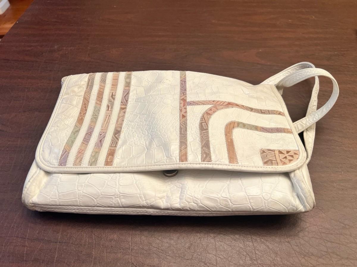 Vintage 1980s–1990s Faux Croc Patchwork Crossbody / Shoulder Bag