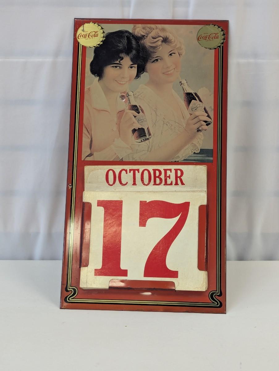 Vintage 1981 Metal Coca-Cola Calendar Sign With Date Cards