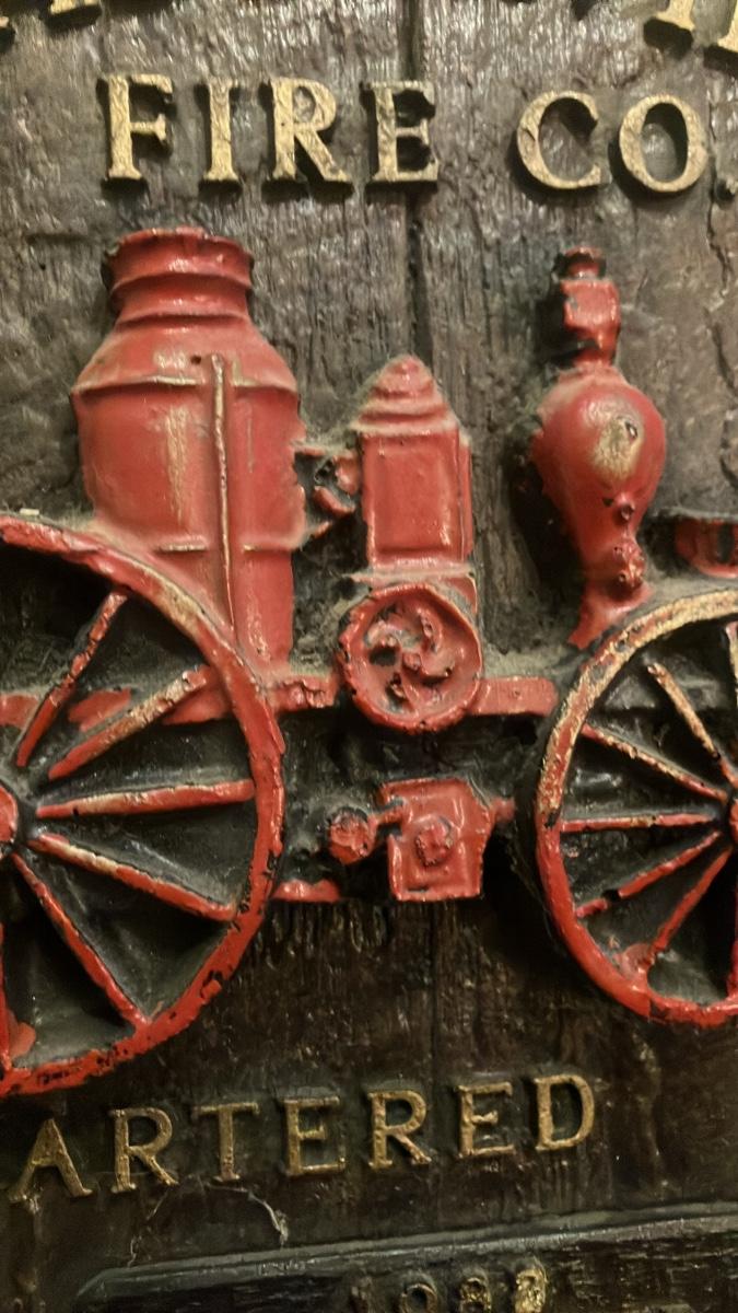 Vintage 1982 Feasterville Fire Company Handcrafted Resin Plaque – Faux Wood Grain, Antique Steam Pumper, by Walter E. Lee Company