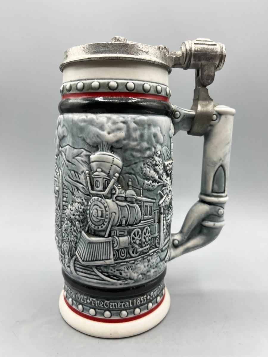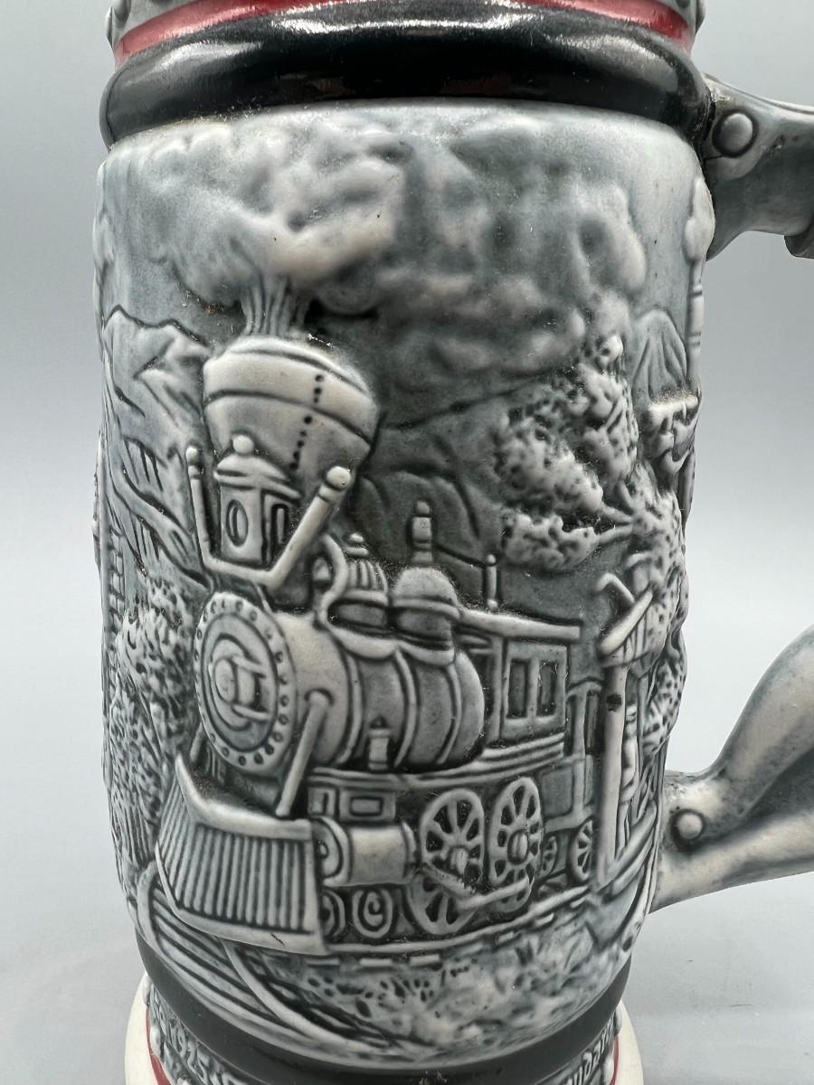 Vintage 1982 Lidded Locomotive Train Themed Beer Stein AVON