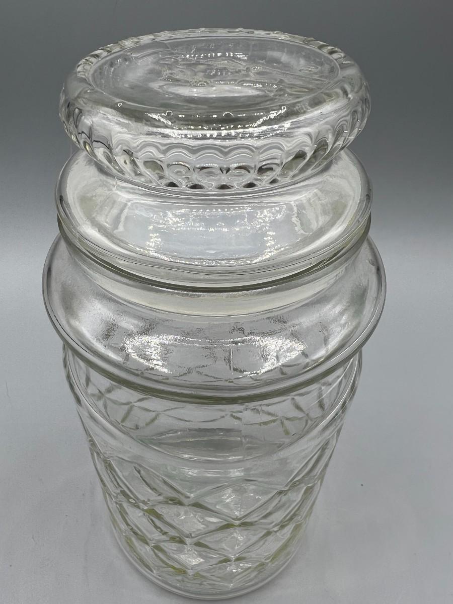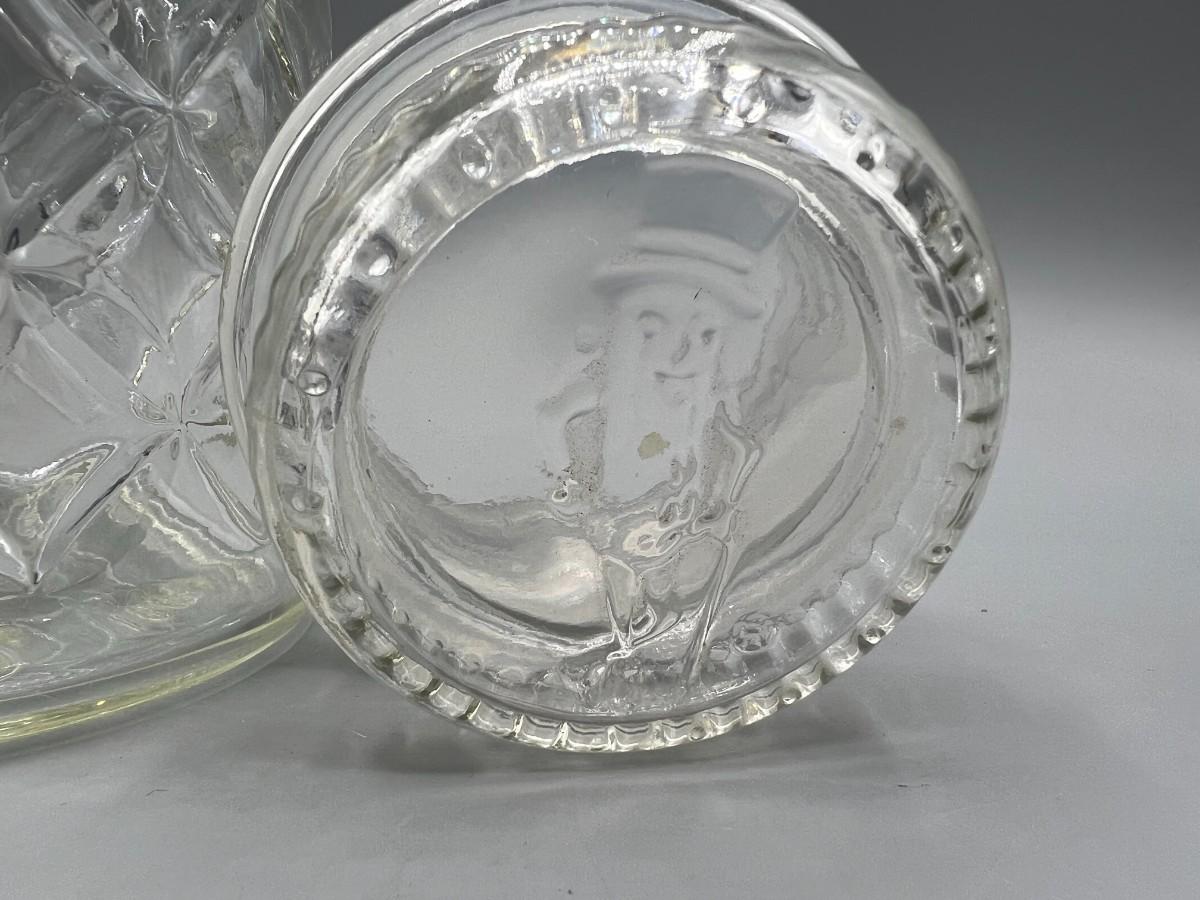 Vintage 1984 Planters Mr. Peanut Commemorative Glass Canister Jar with Lid, there are no significant cracks or chips to the glass and is in good vintage condition. Check pictures for more details and for sizing.