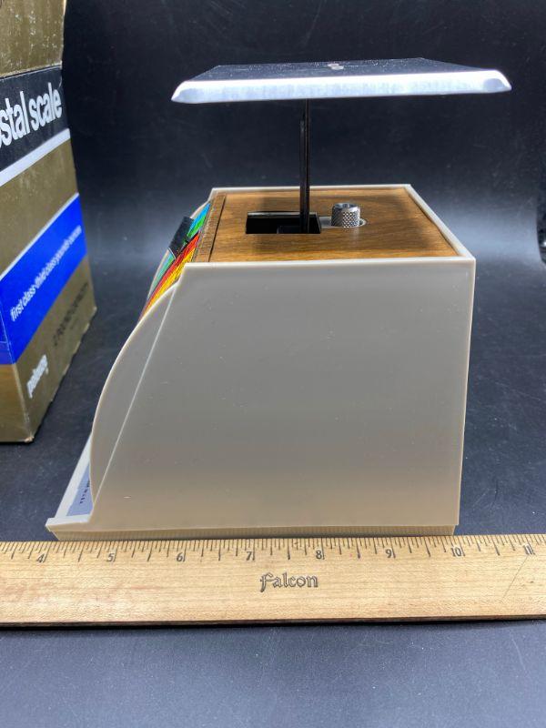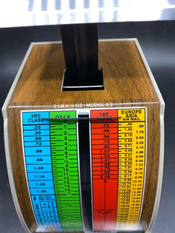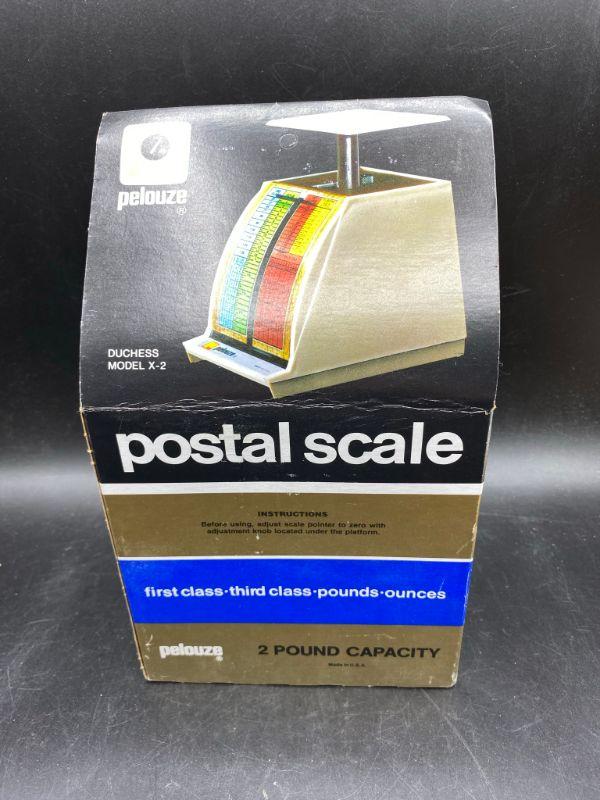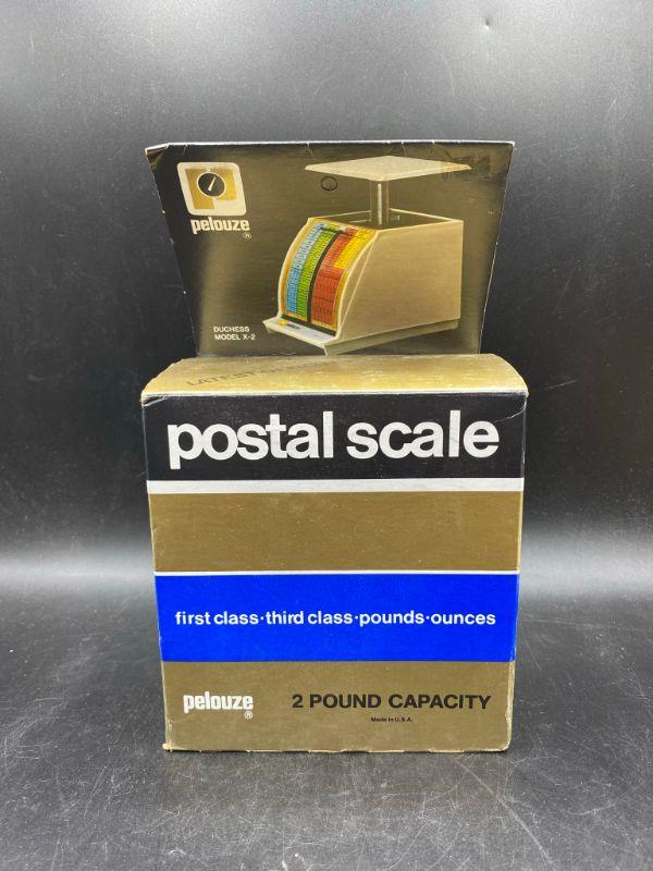 Vintage 2lb postal scale. Looks new in the box. From 1985 so postage amounts are wrong but will give you the weight. Great for display.