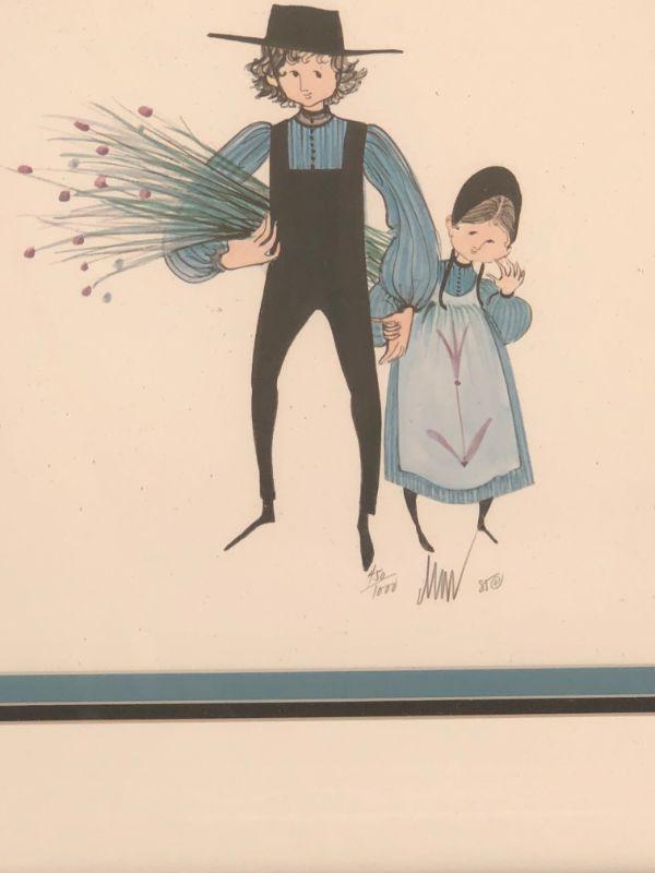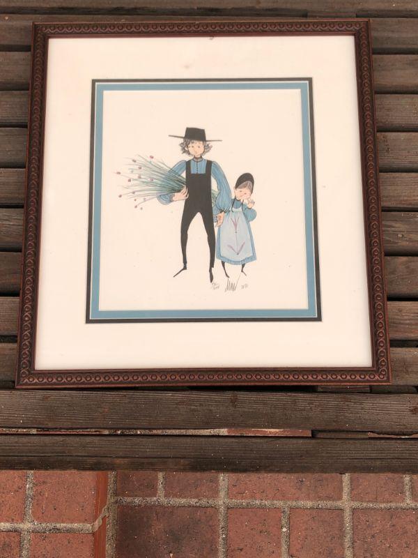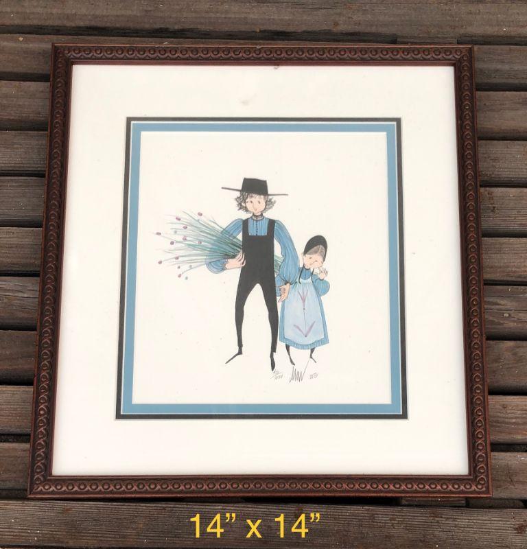 This piece of art is a vintage print, limited ed. #450 out of 1000. This rare piece is of an Amish man holding hand of a child. It is signed & framed. Frame measure approx. 14 X 14 INCHES - it is in good displayed condition. Colors look sharp.