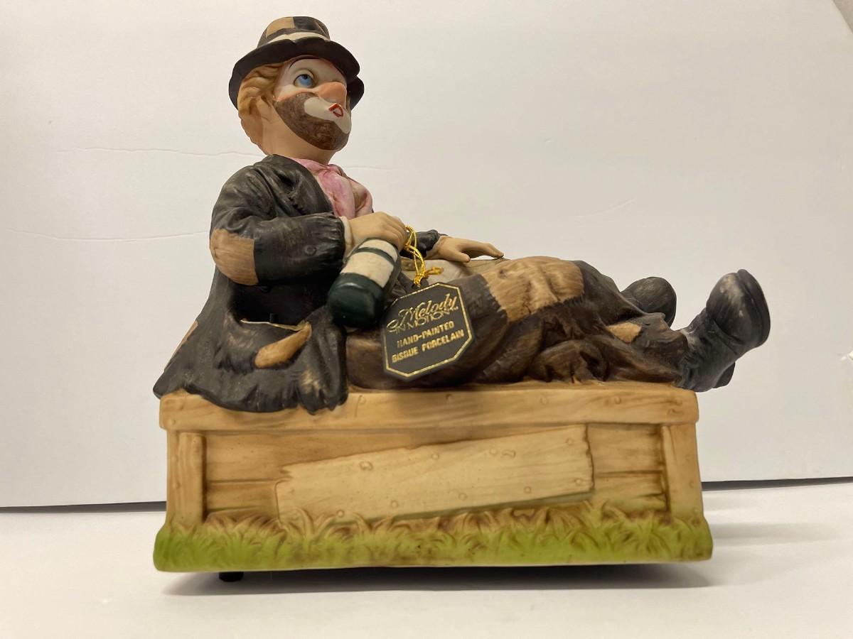 Vintage 1985 Waco Melody In Motion Hand Painted Bisque Porcelain Music Box “Willie the Hob”
